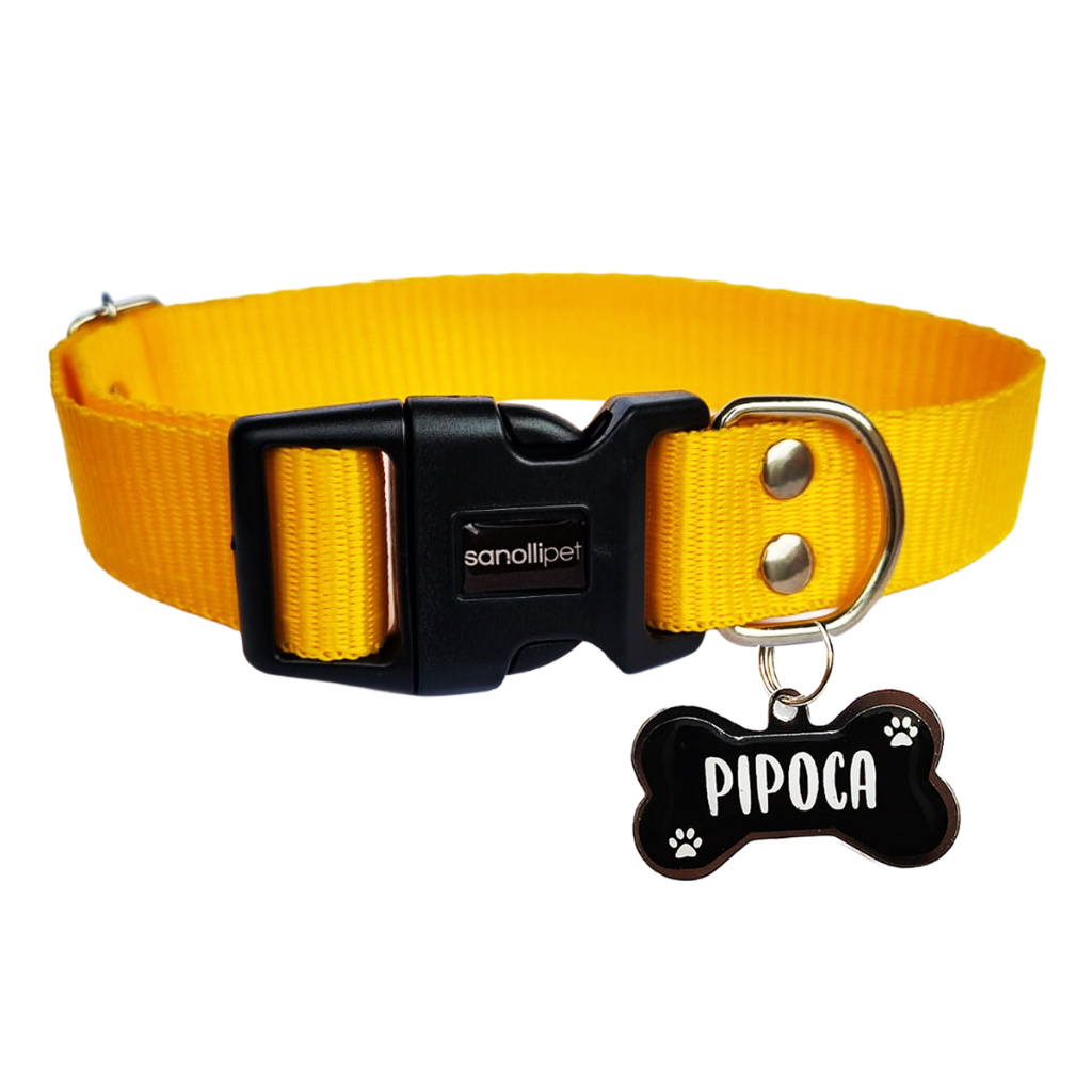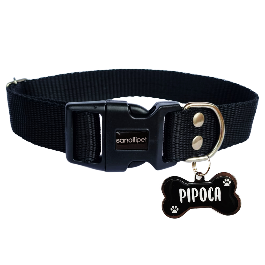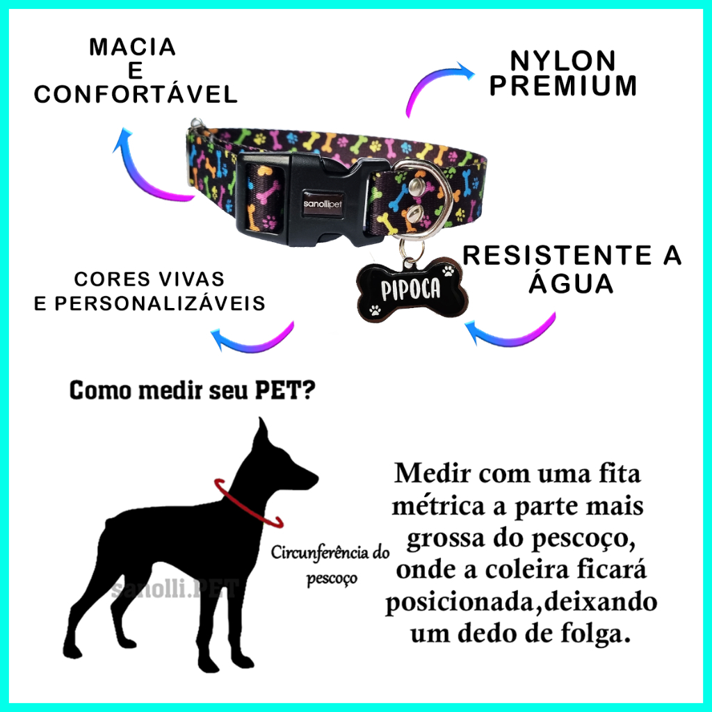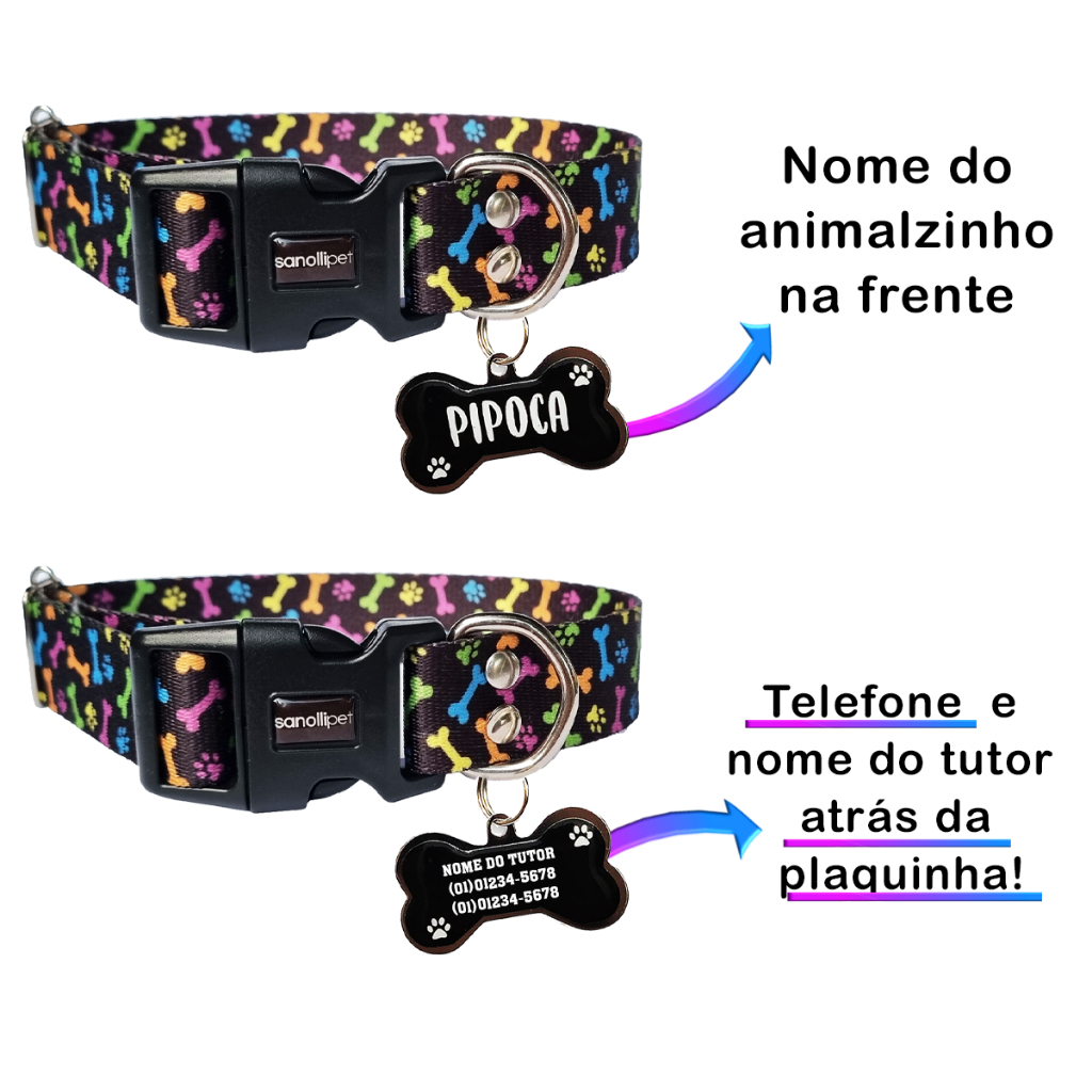 Coleira Para Cachorro Reforçada Com Plaquinha de Identificação Frente E Verso Nome Telefone Premium