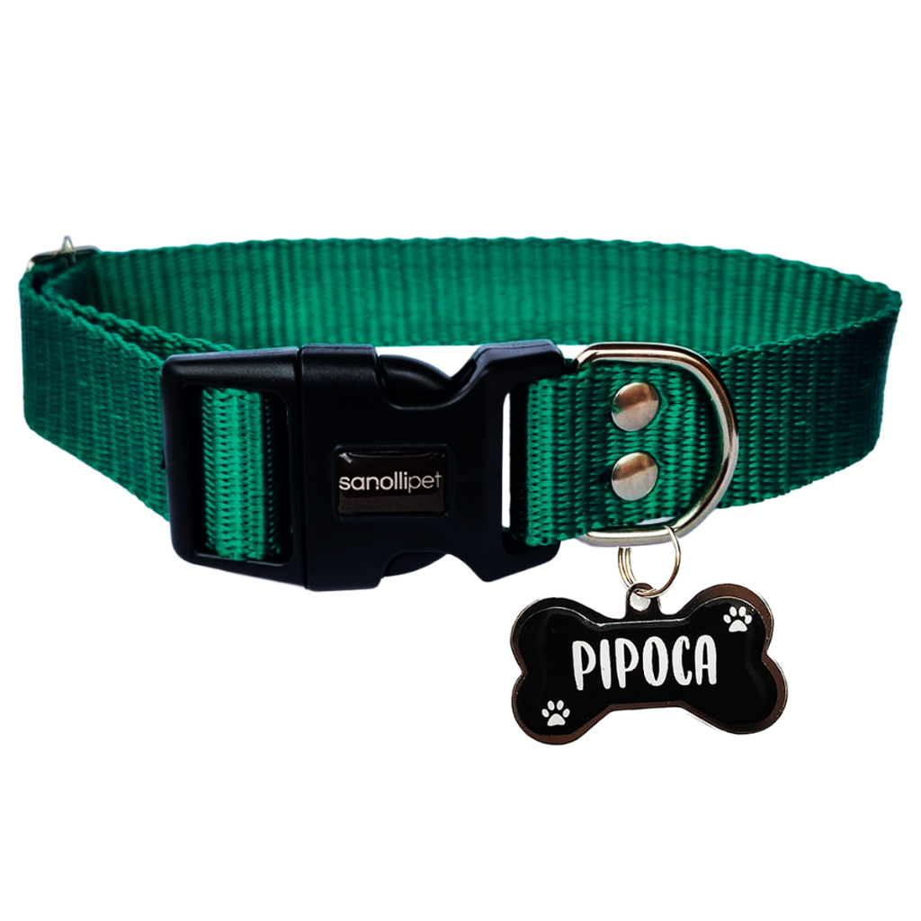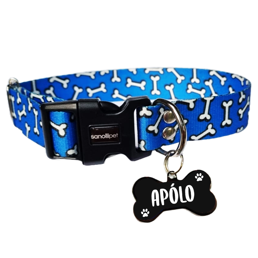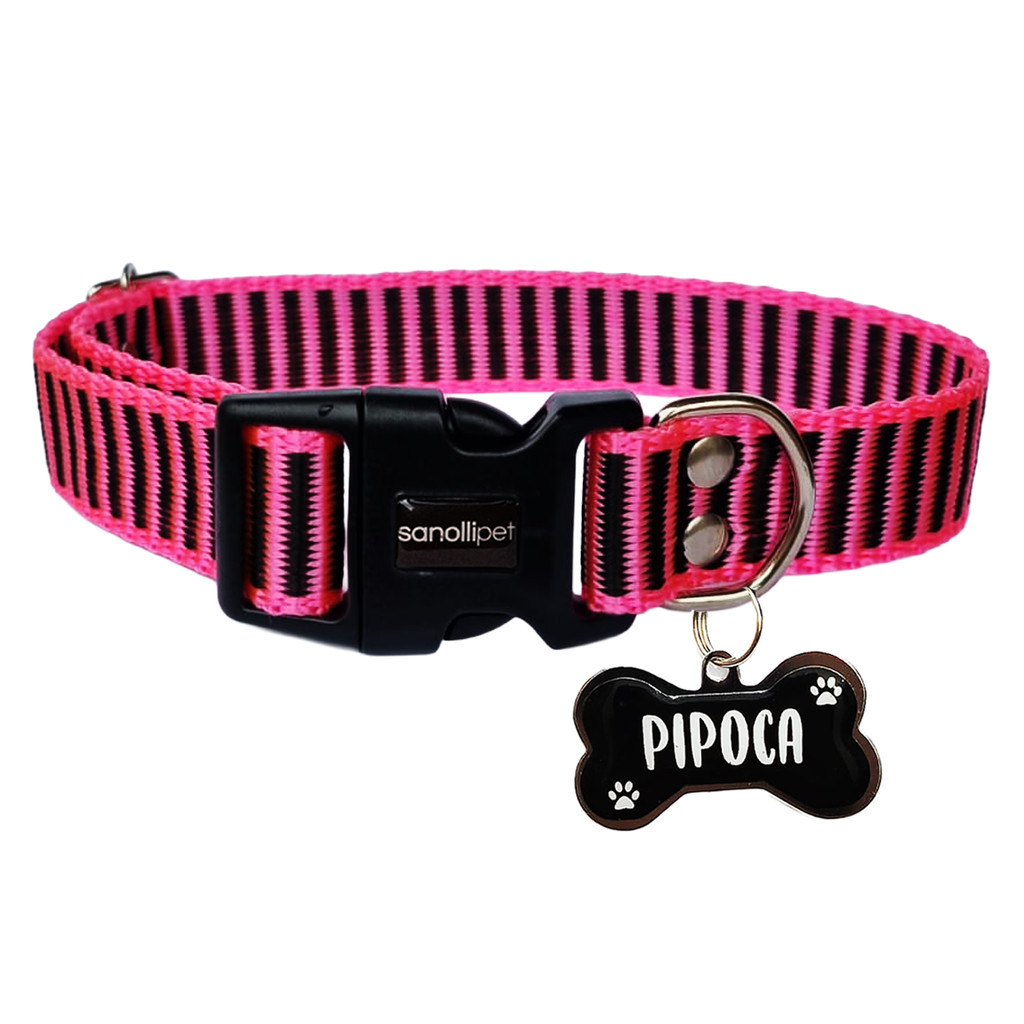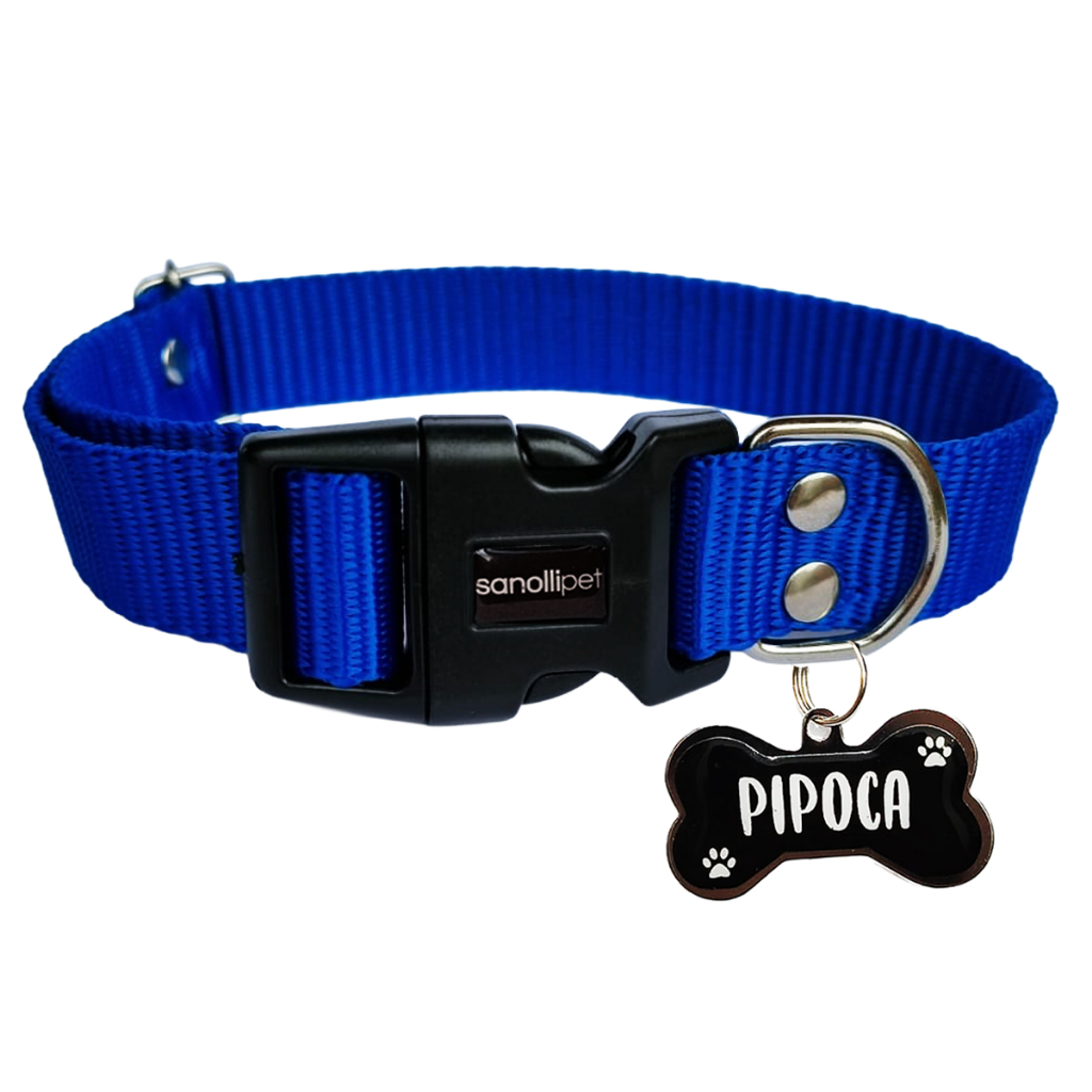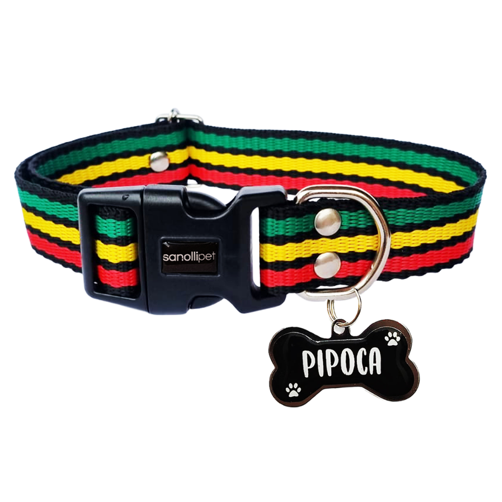 Coleira Para Cachorro Reforçada Com Plaquinha de Identificação Frente E Verso Nome Telefone Premium