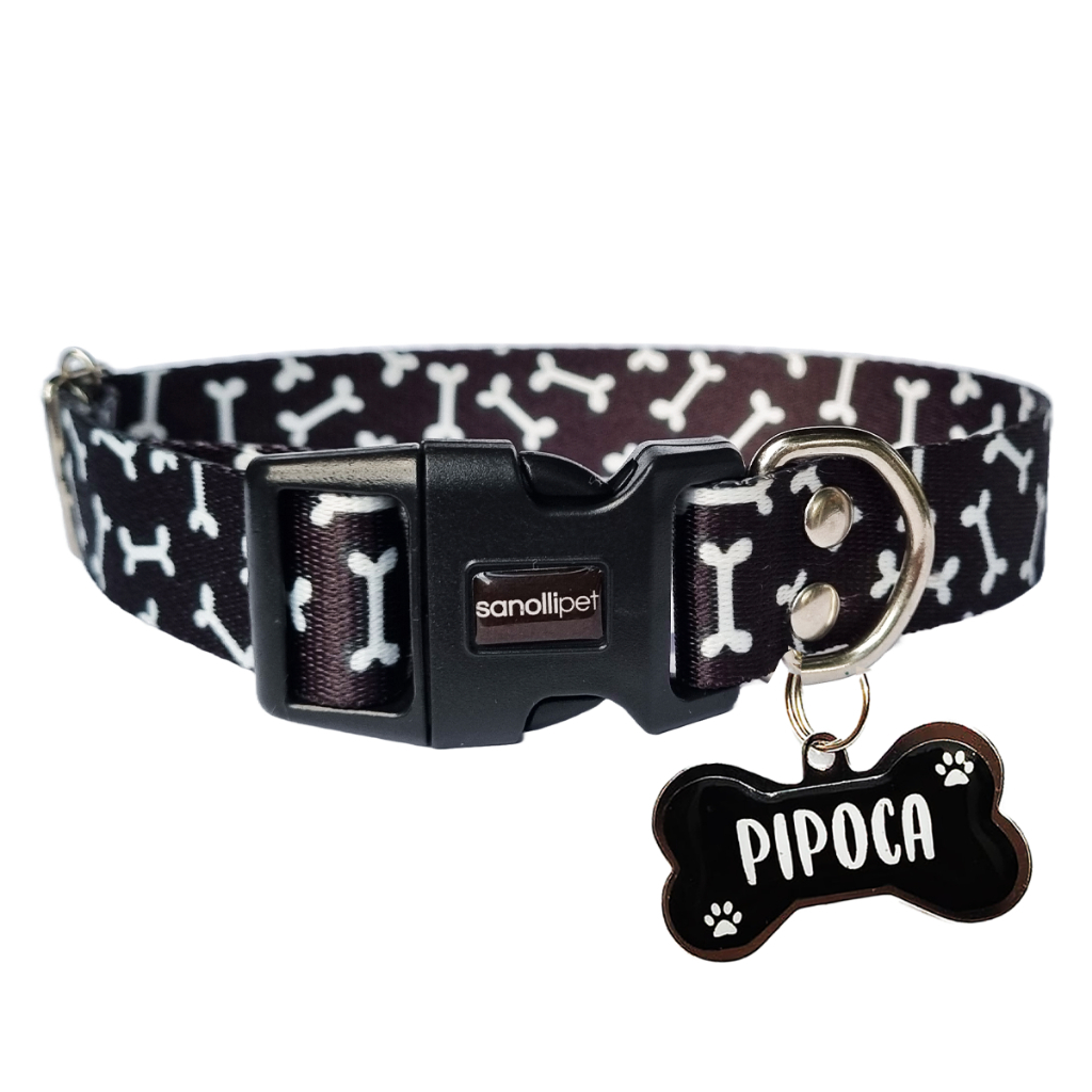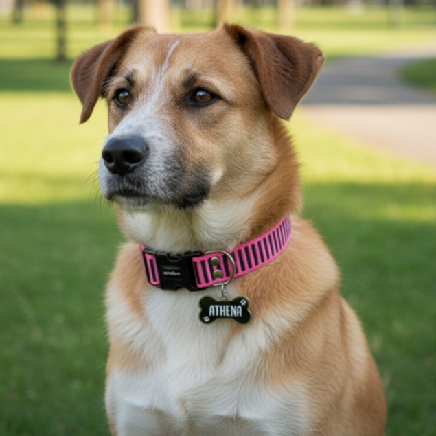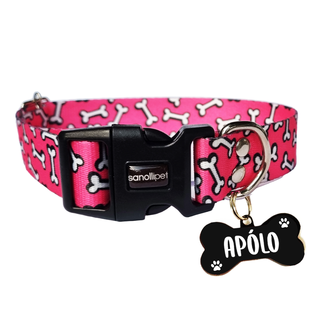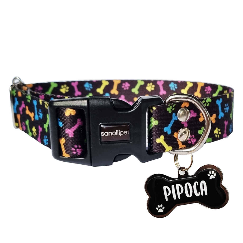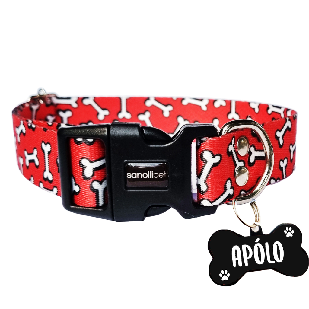 Coleira Para Cachorro Reforçada Com Plaquinha de Identificação Frente E Verso Nome Telefone Premium
