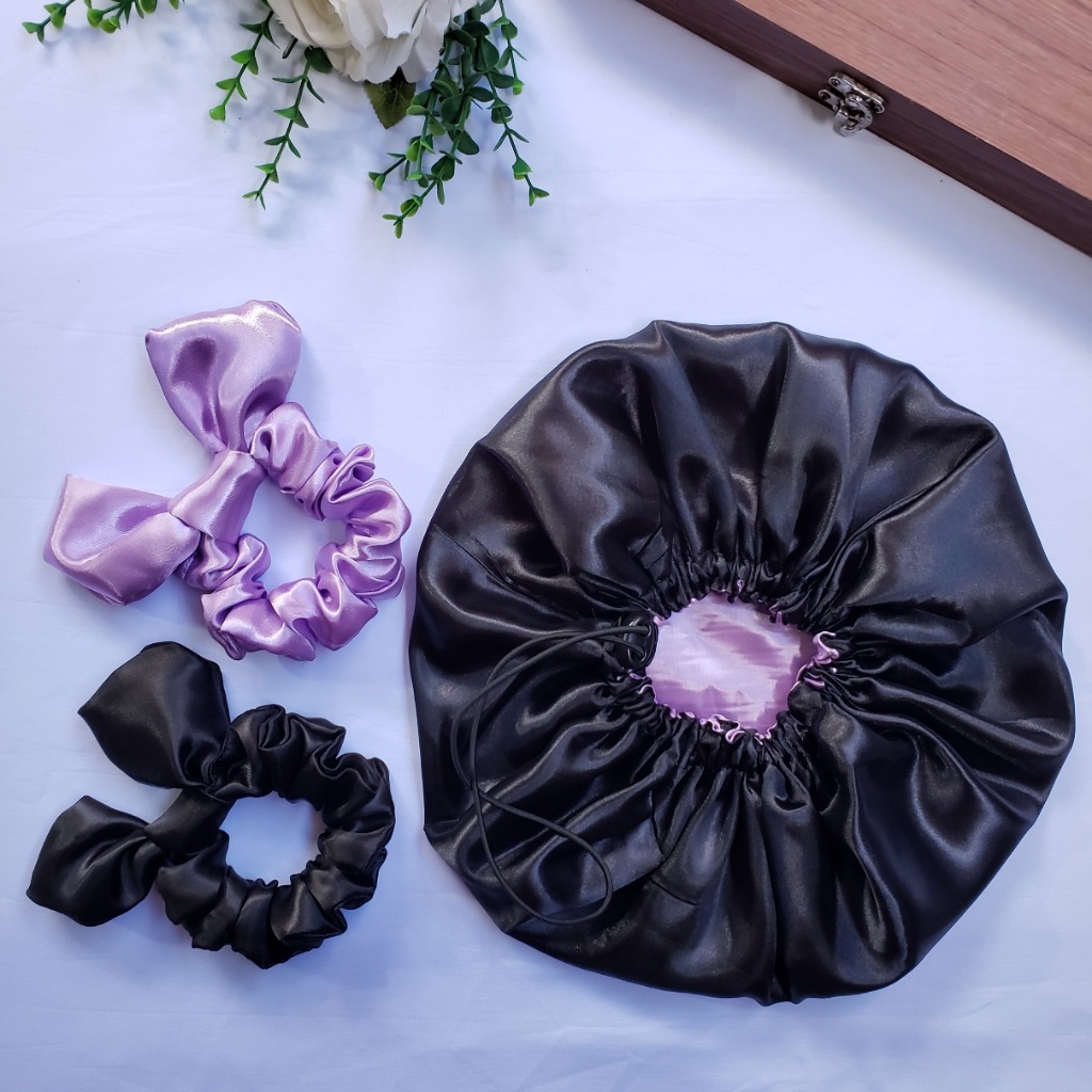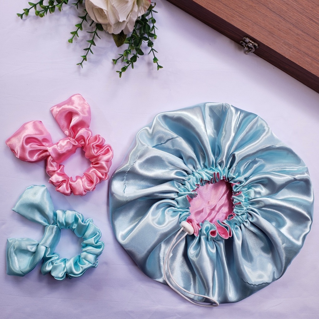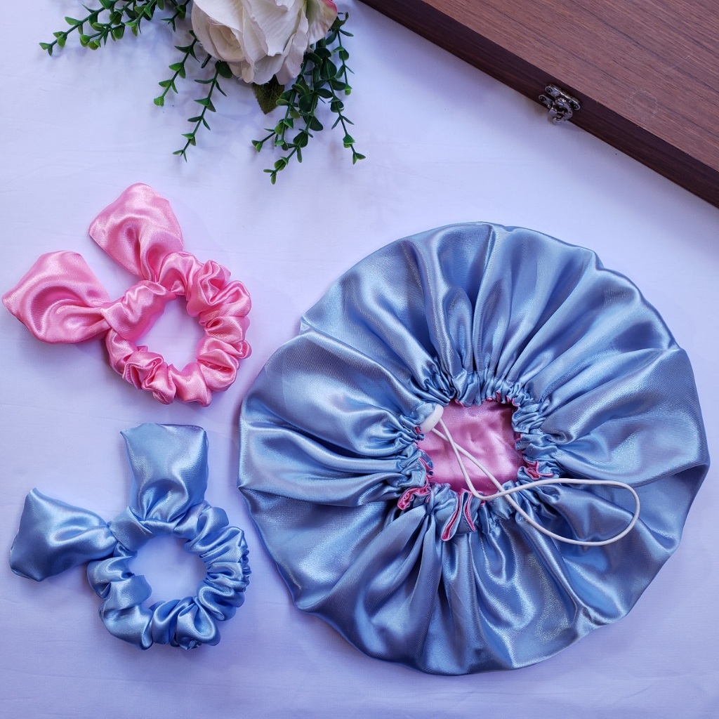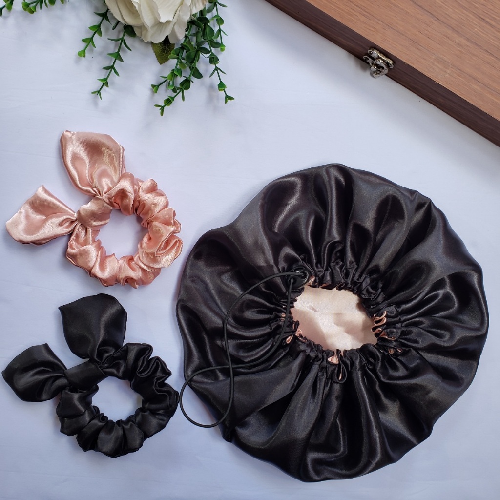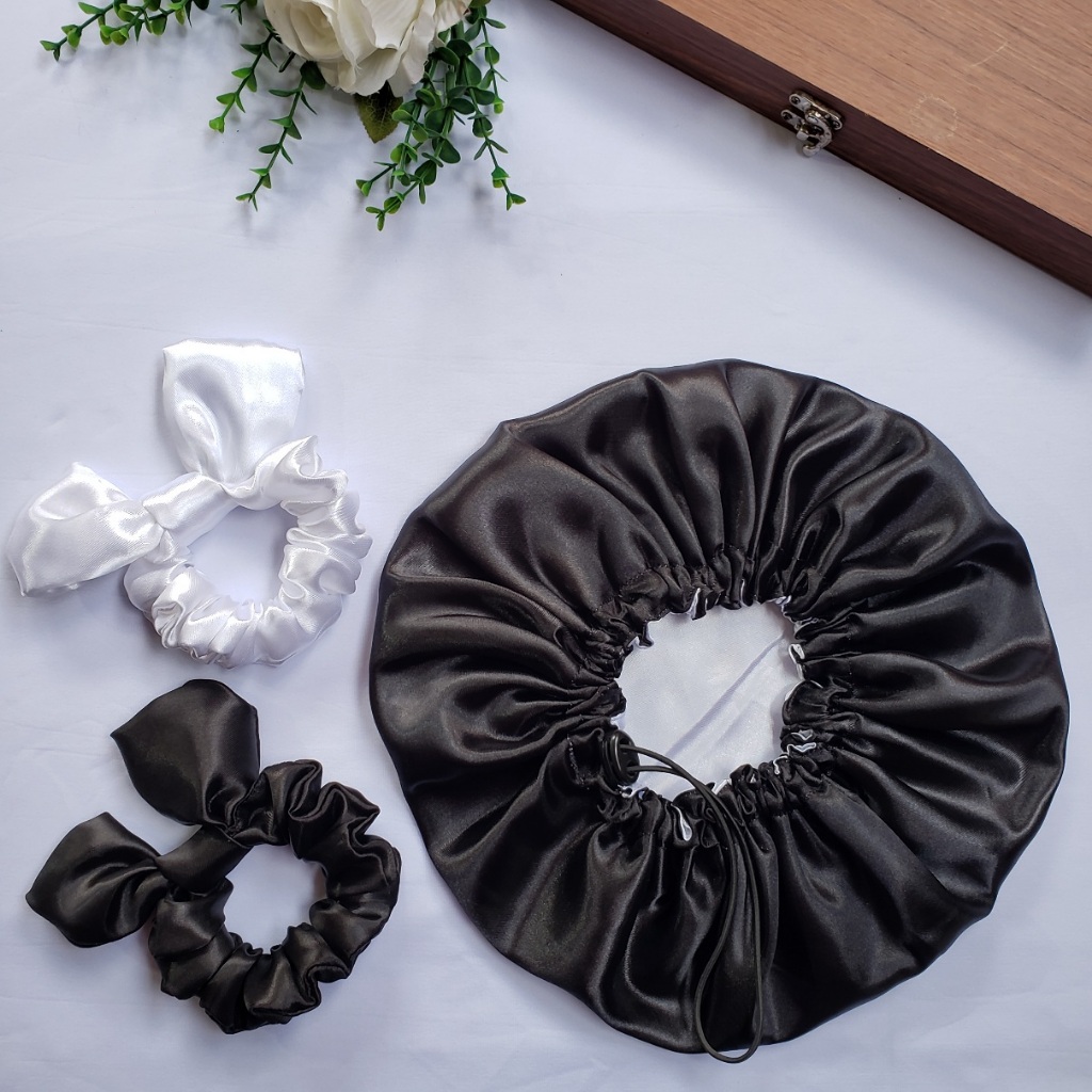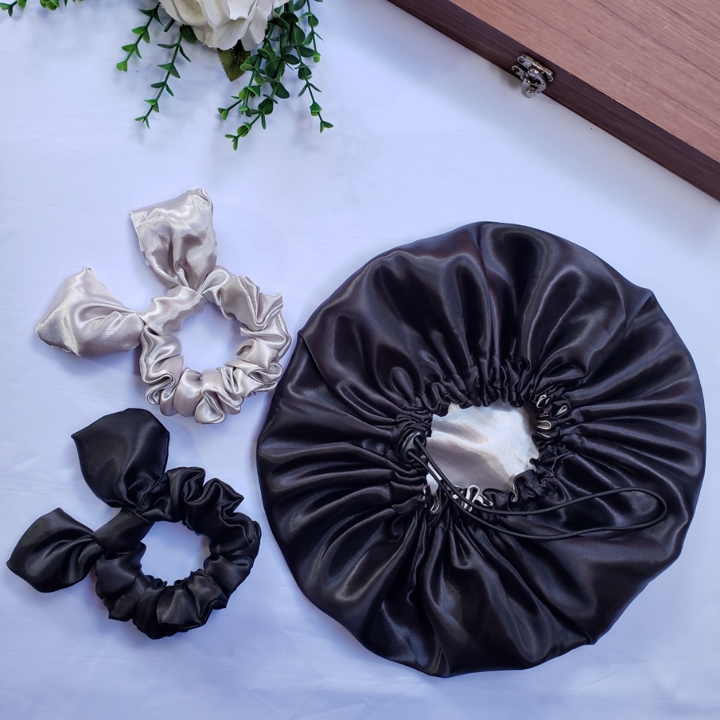 Kit 1 Touca De Cetim GG Dupla Camada Regulável + 2 Scrunchie