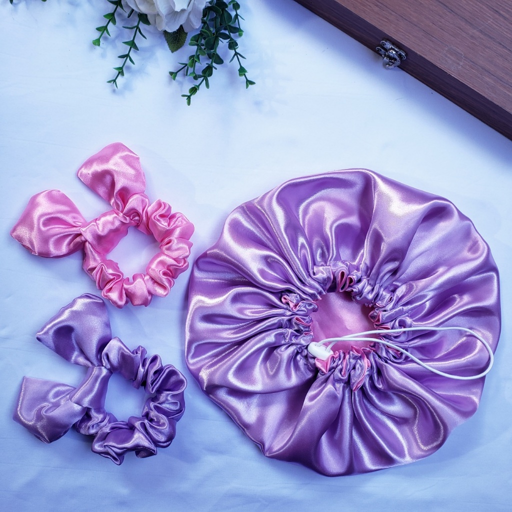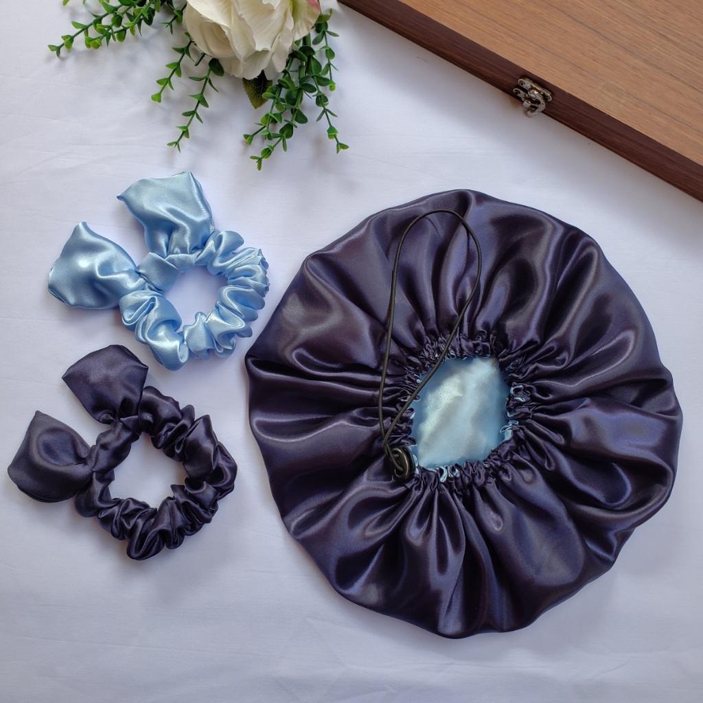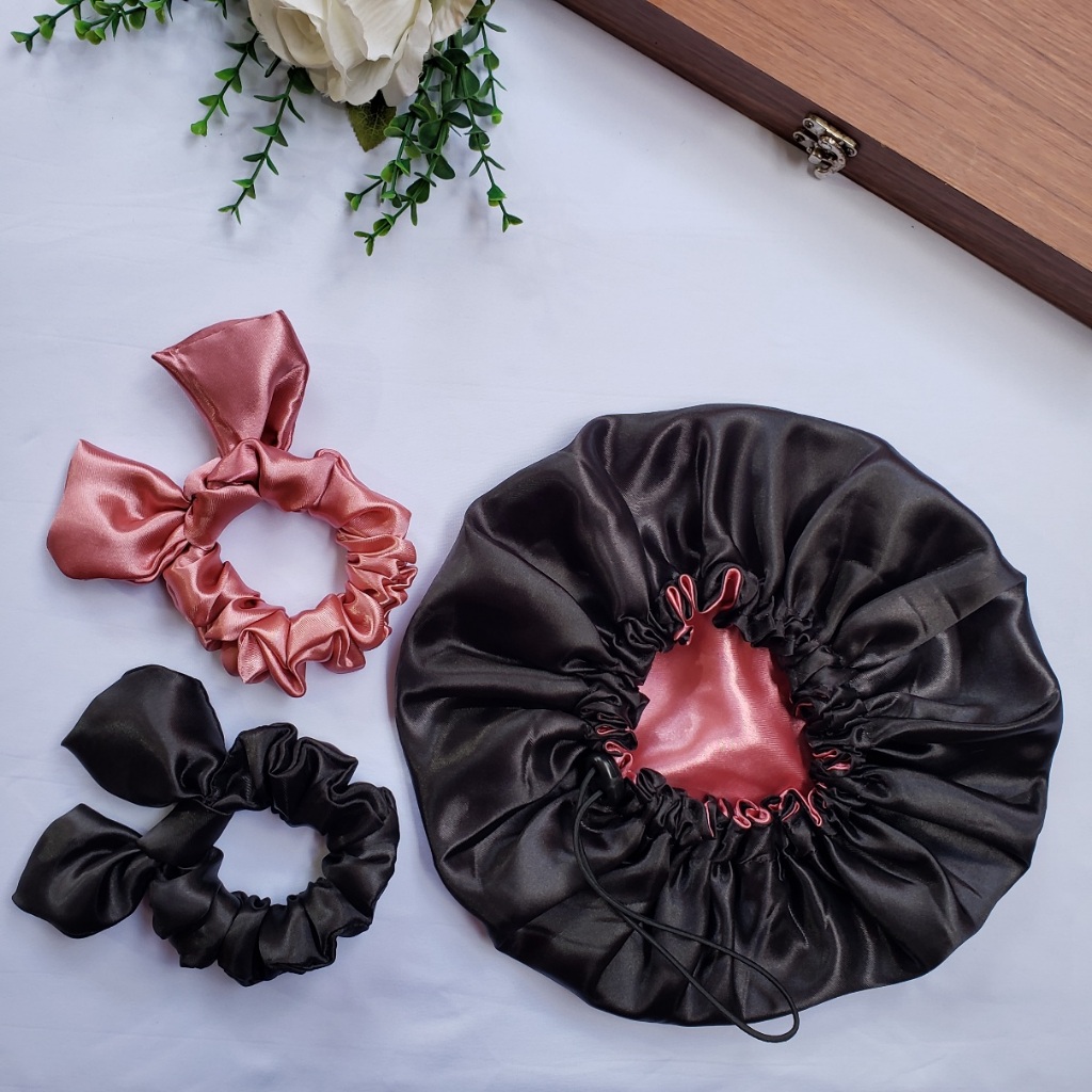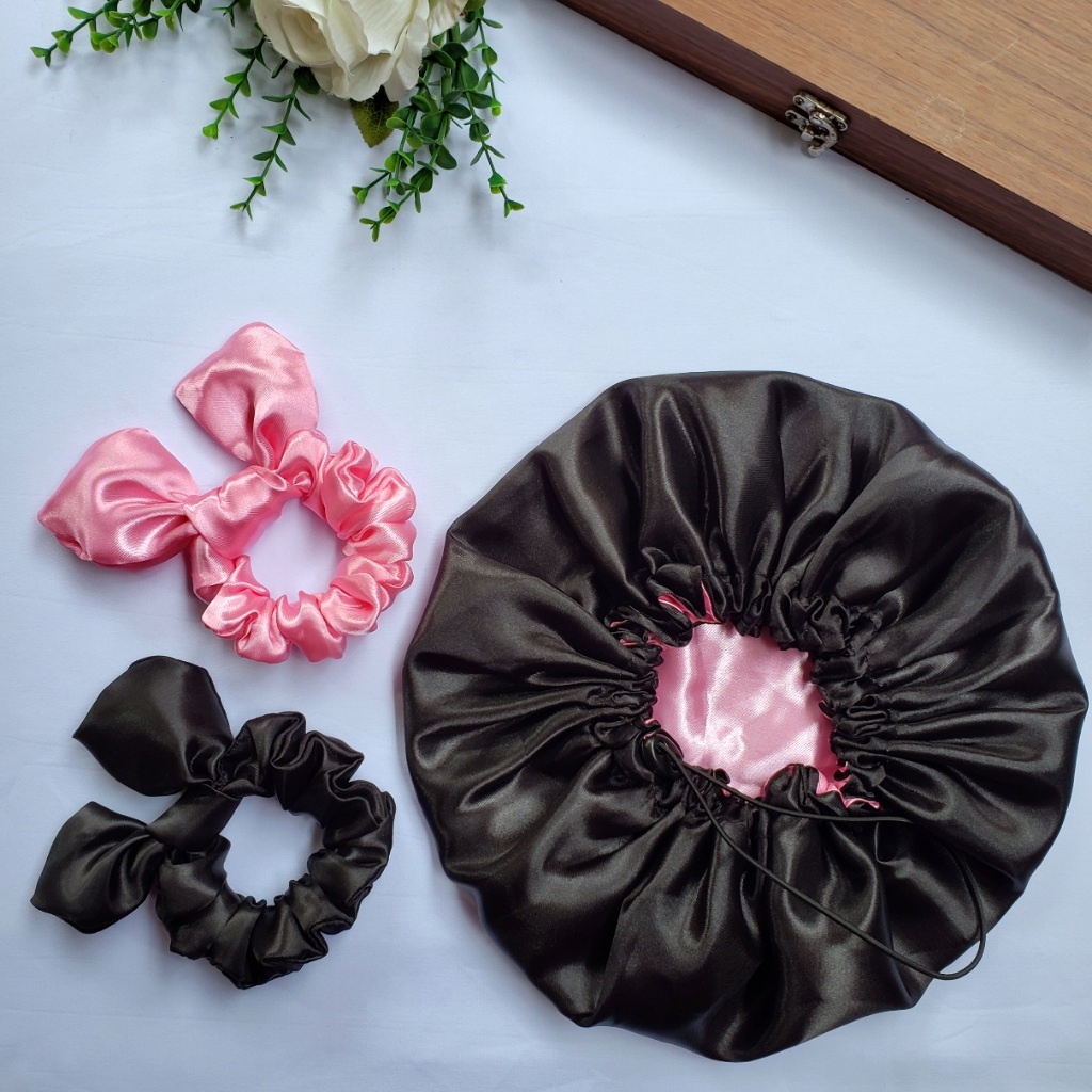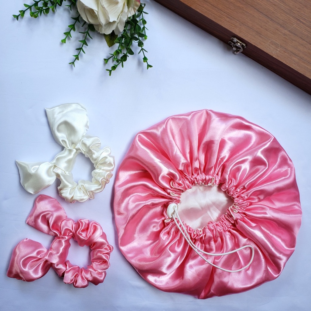 Kit 1 Touca De Cetim GG Dupla Camada Regulável + 2 Scrunchie