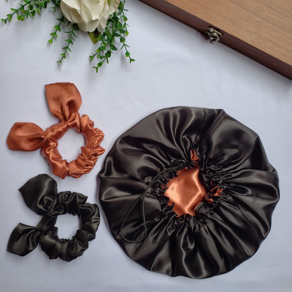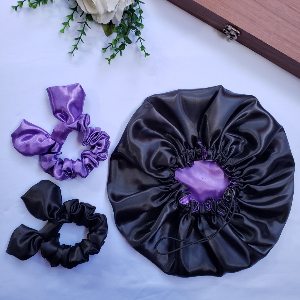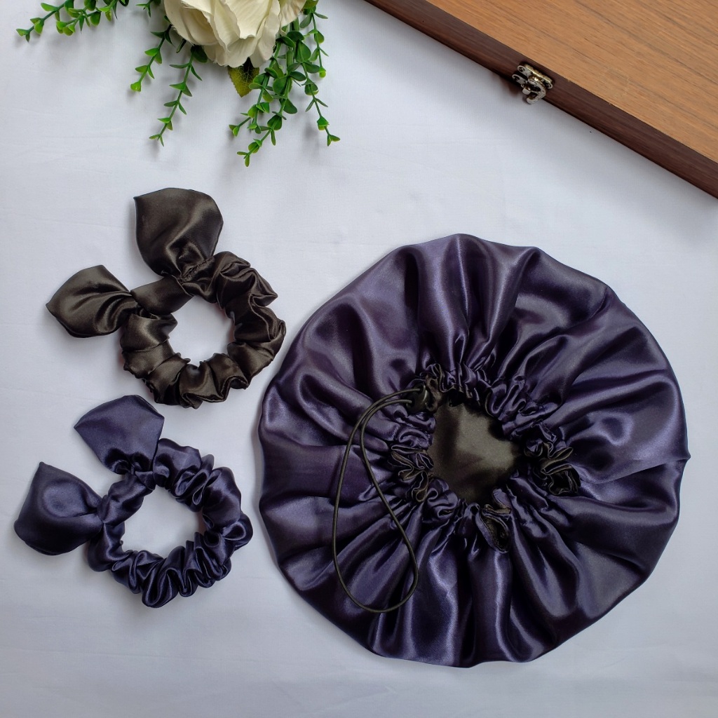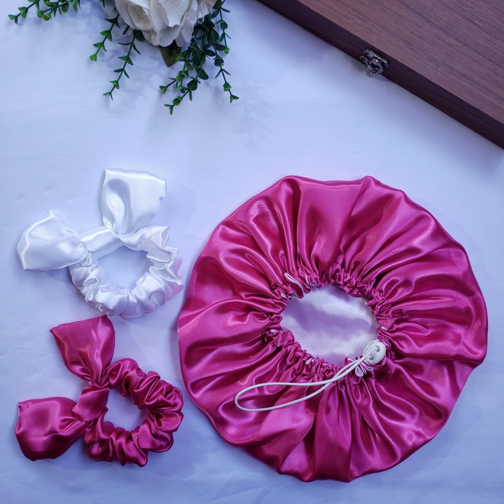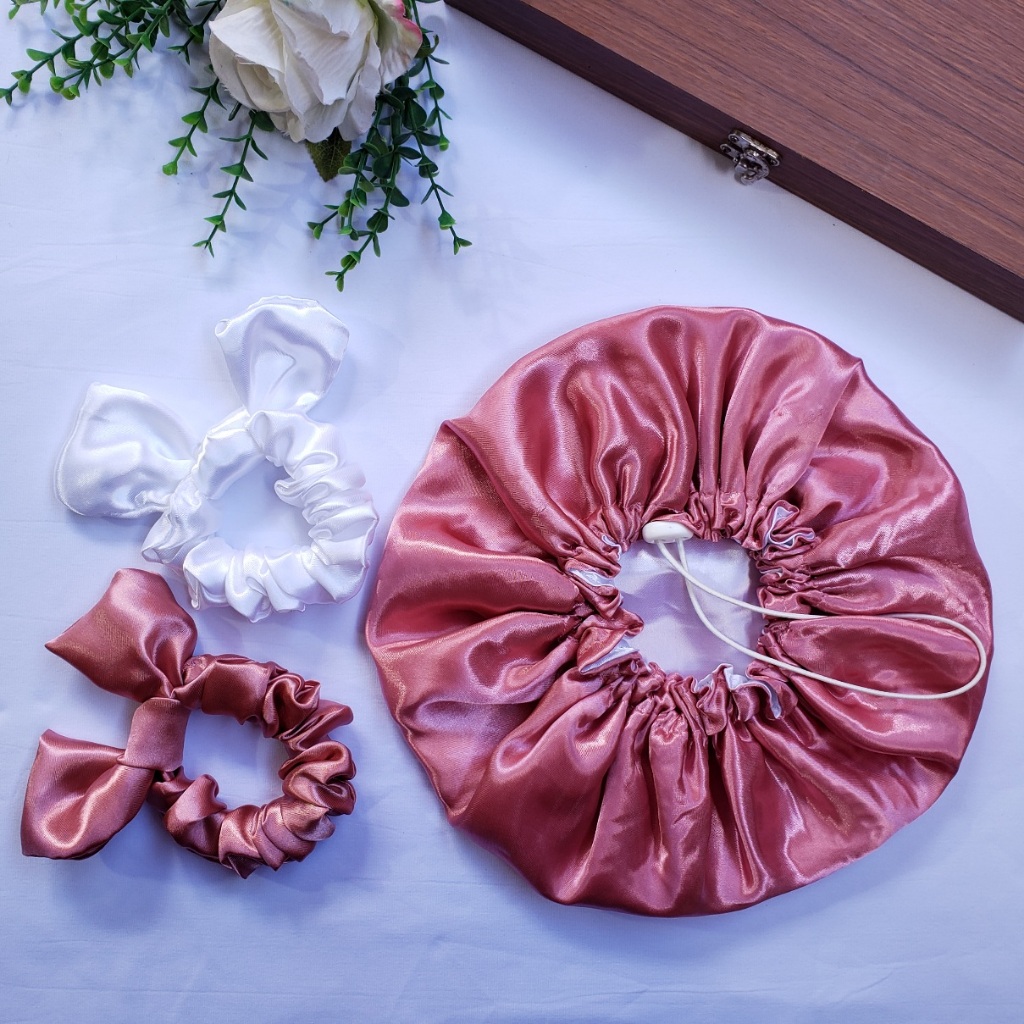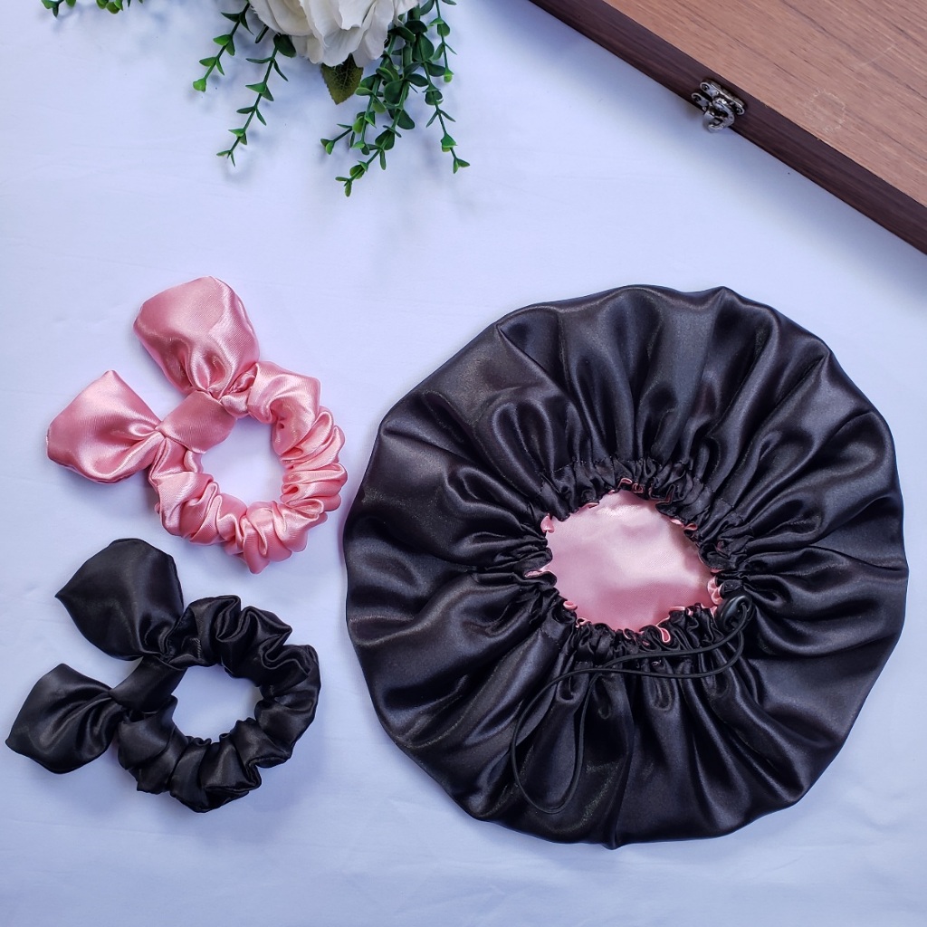 Kit 1 Touca De Cetim GG Dupla Camada Regulável + 2 Scrunchie