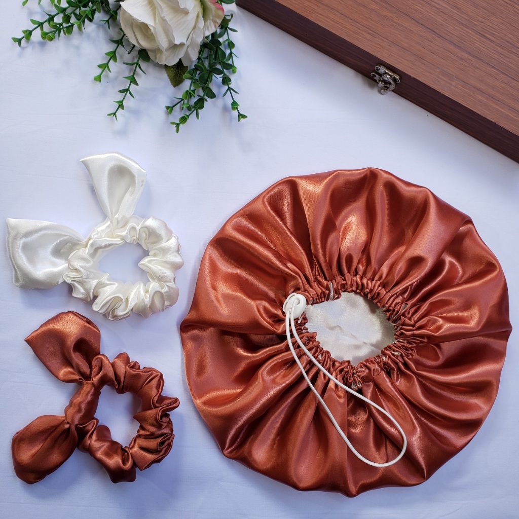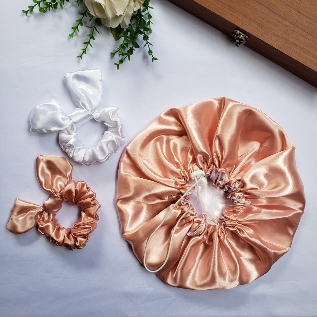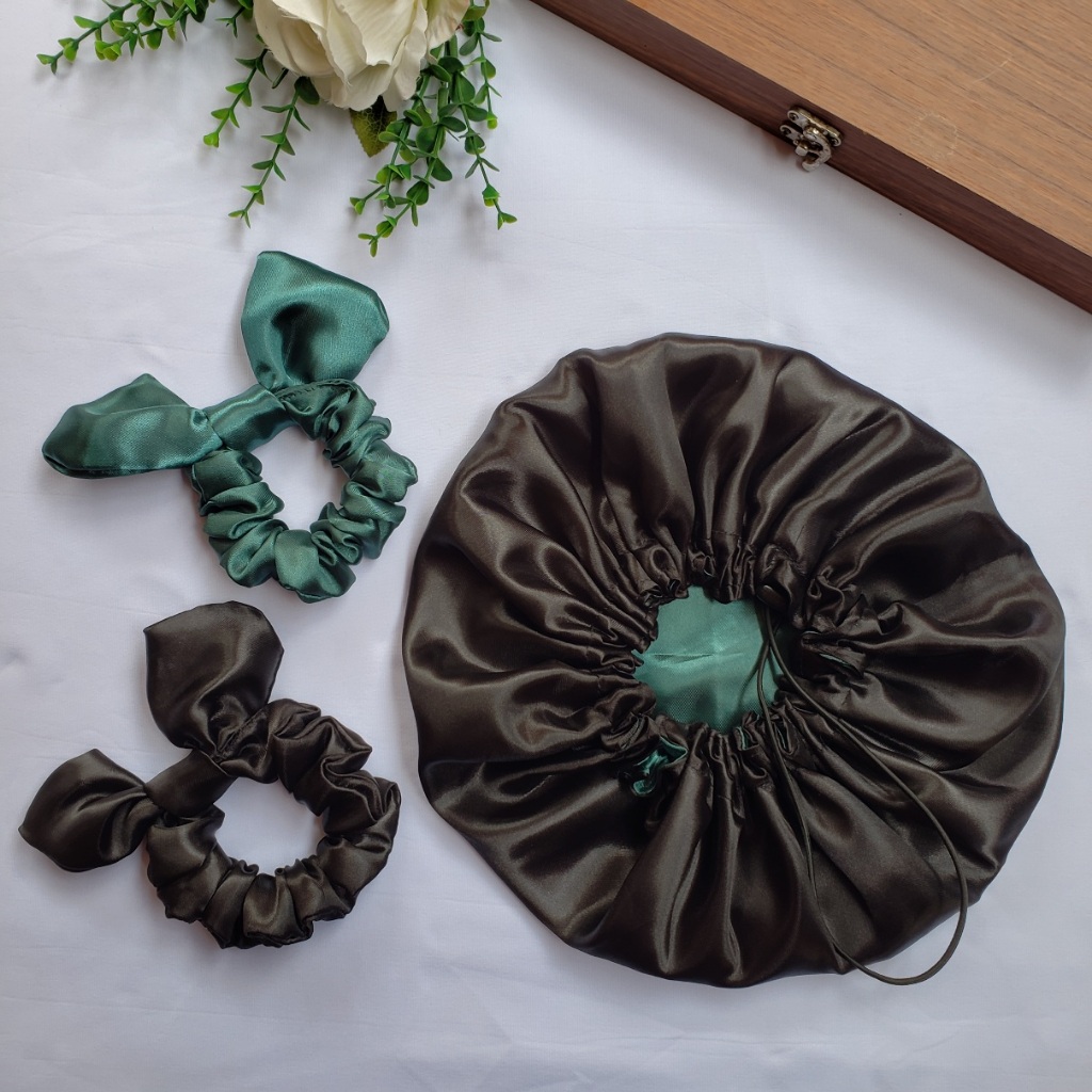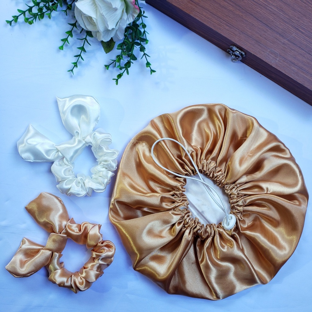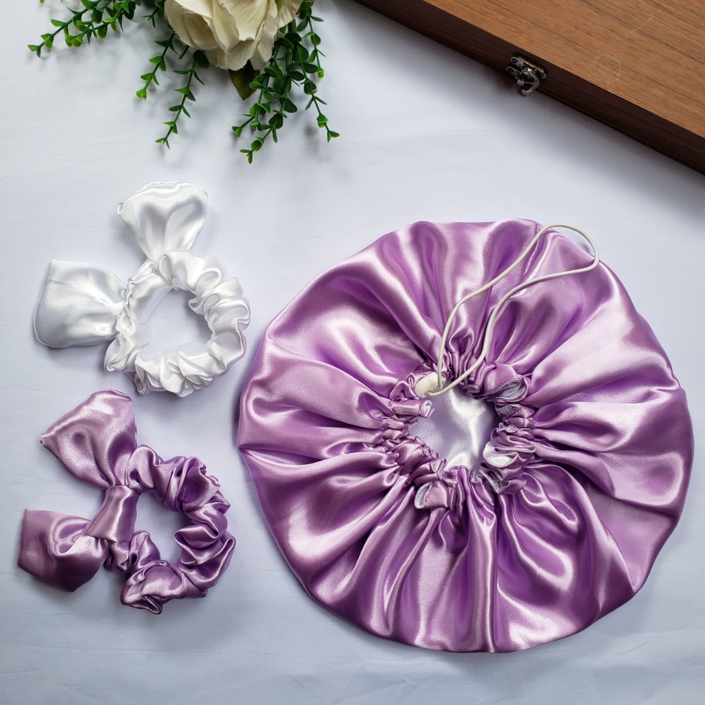 Kit 1 Touca De Cetim GG Dupla Camada Regulável + 2 Scrunchie