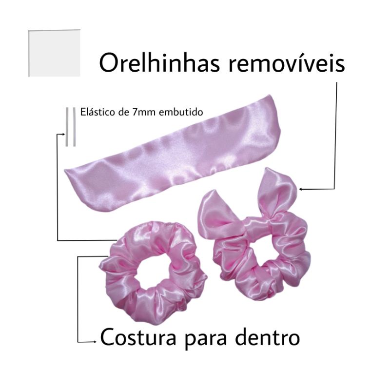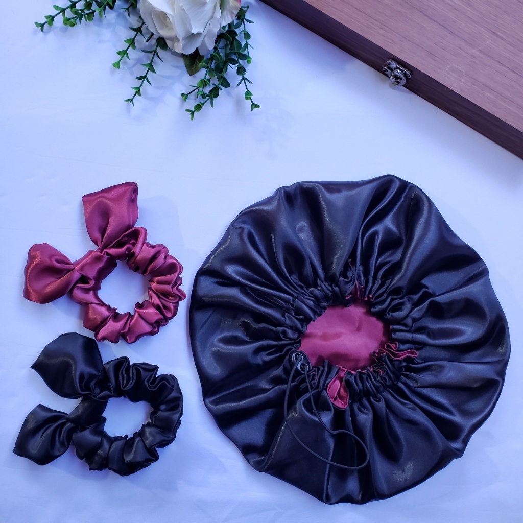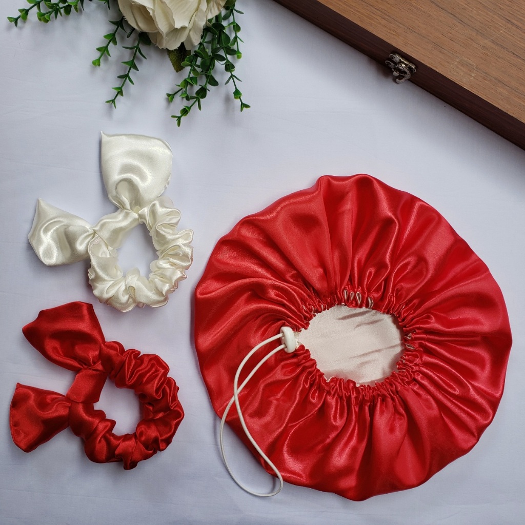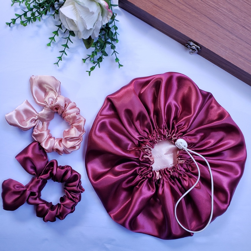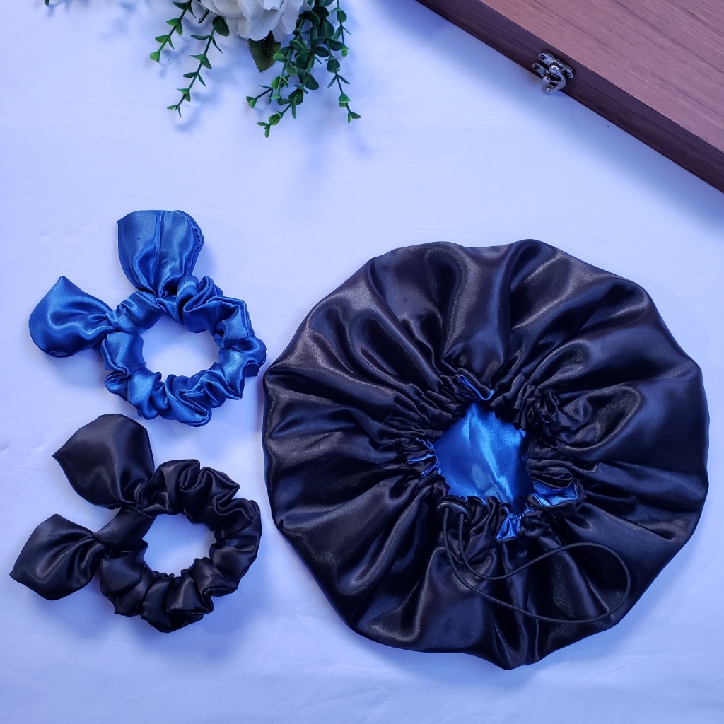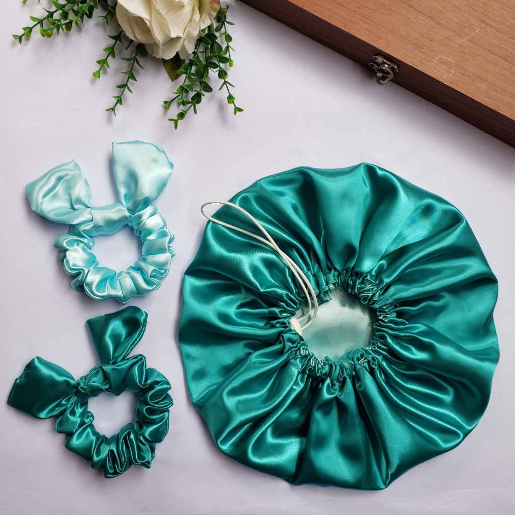 Kit 1 Touca De Cetim GG Dupla Camada Regulável + 2 Scrunchie