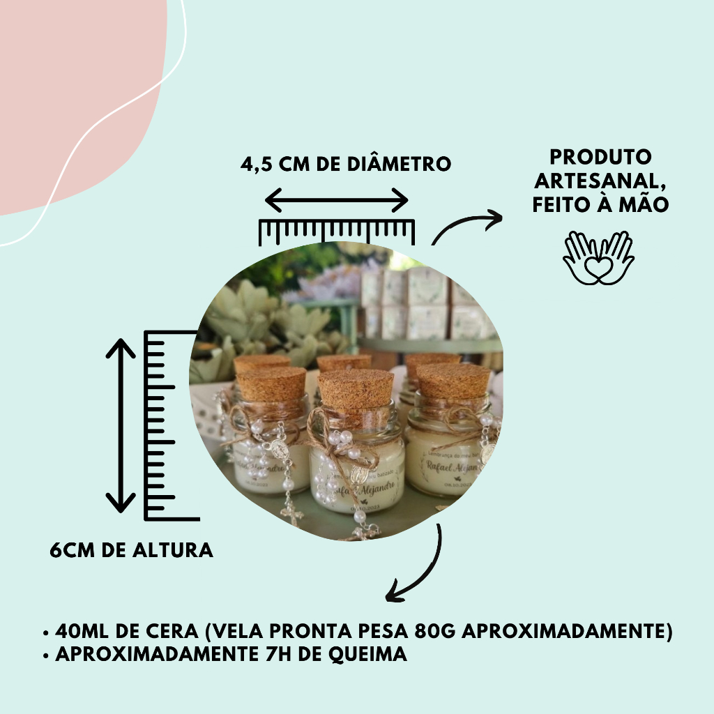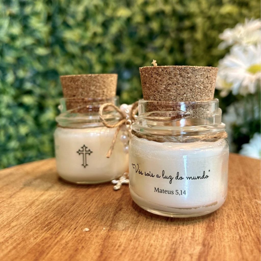 kit 5 lembrancinhas velas perfumadas - tampa de rolha + mini terço