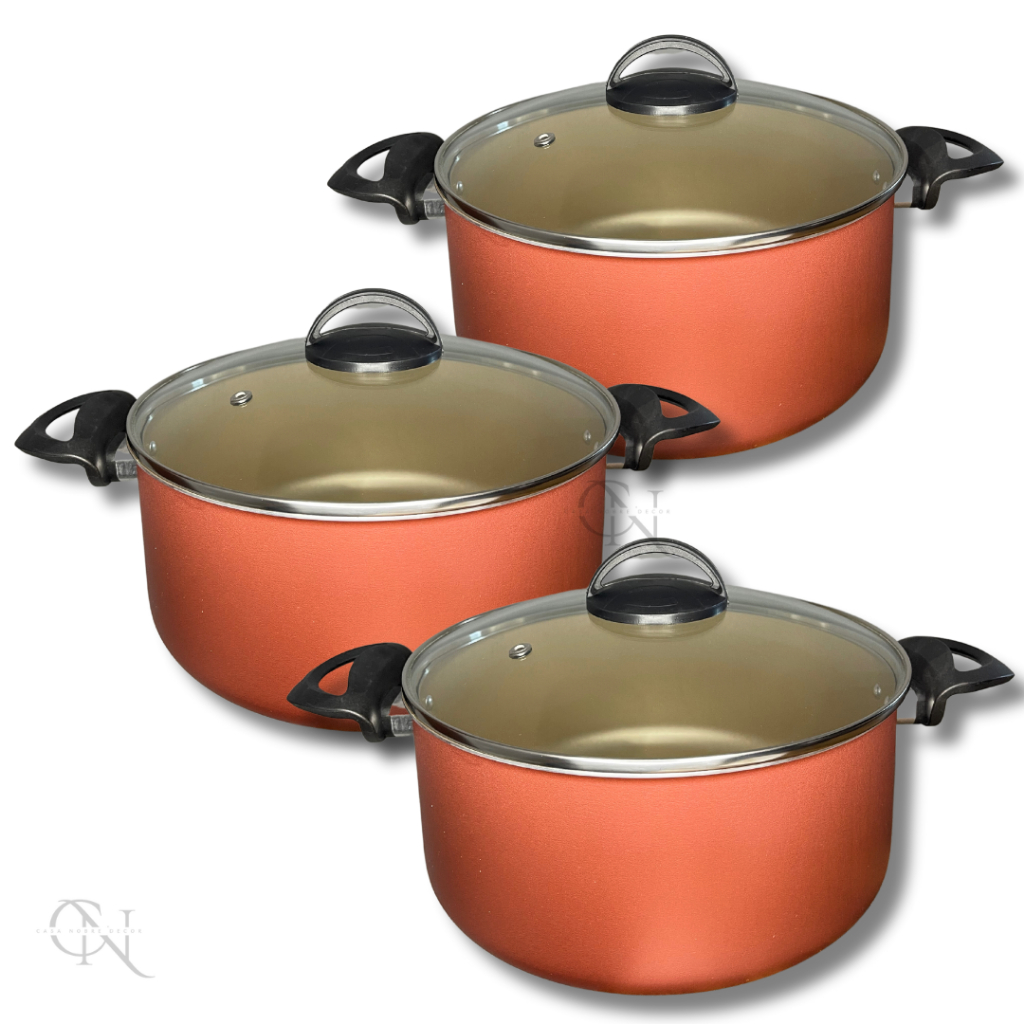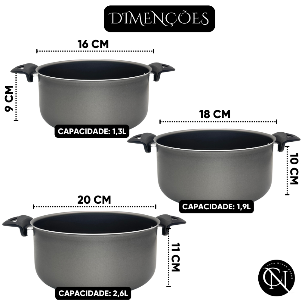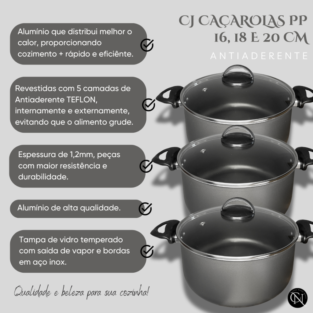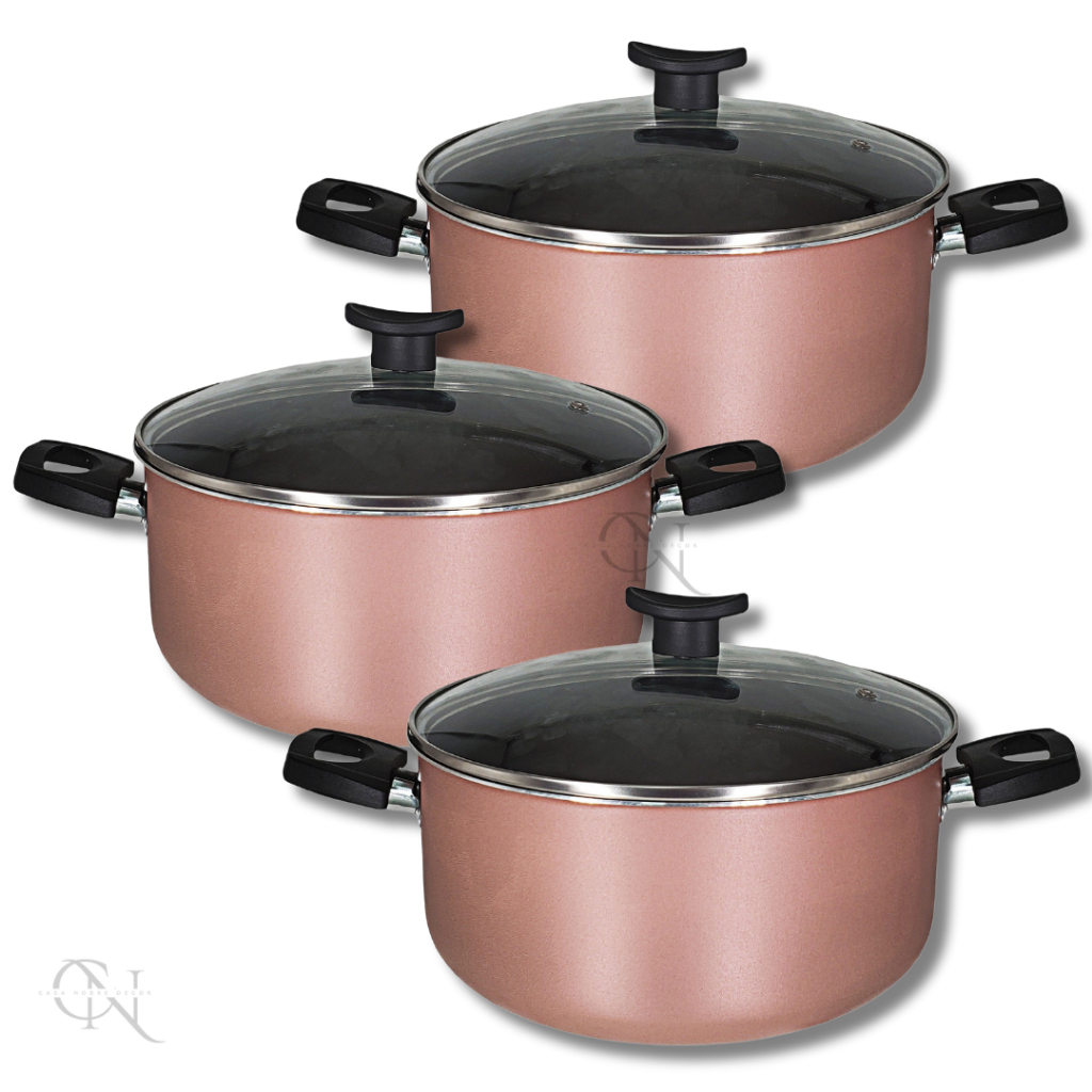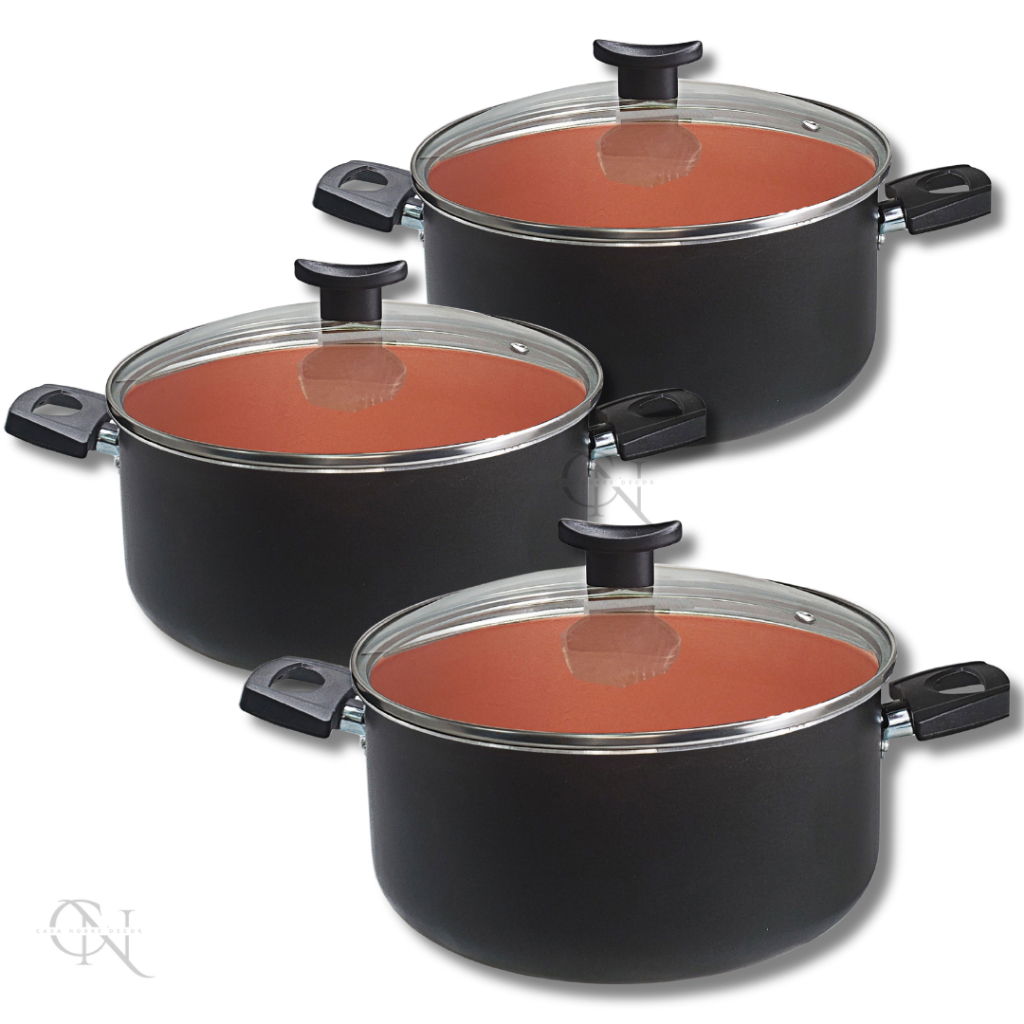 Kit Jogo 3 Peças Panelas Caçarolas 16 18 e 20 cm Antiaderente 5 Camadas de Teflon com Tampa de Vidro