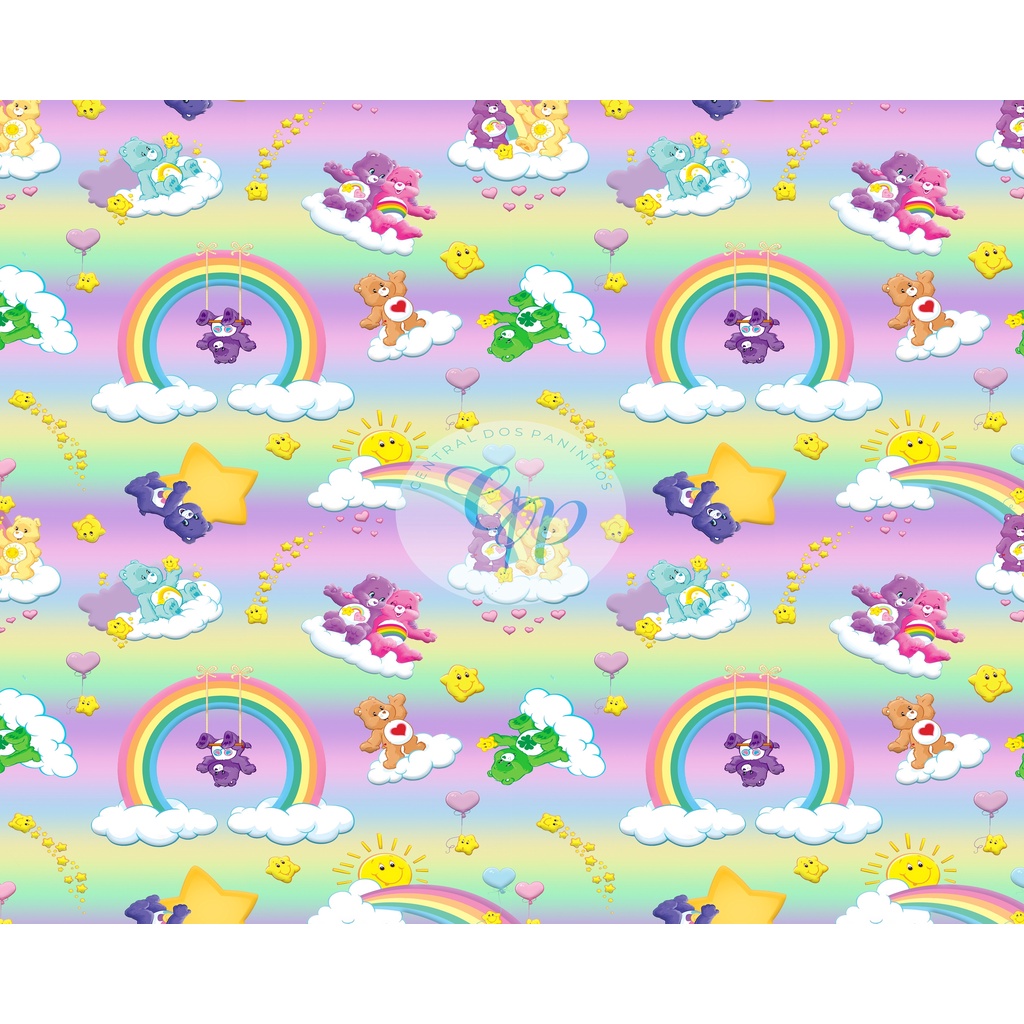 Tecido tricoline, microfibra ou gabardine - Ursinhos carinhosos - Arco iris - 0.50CM