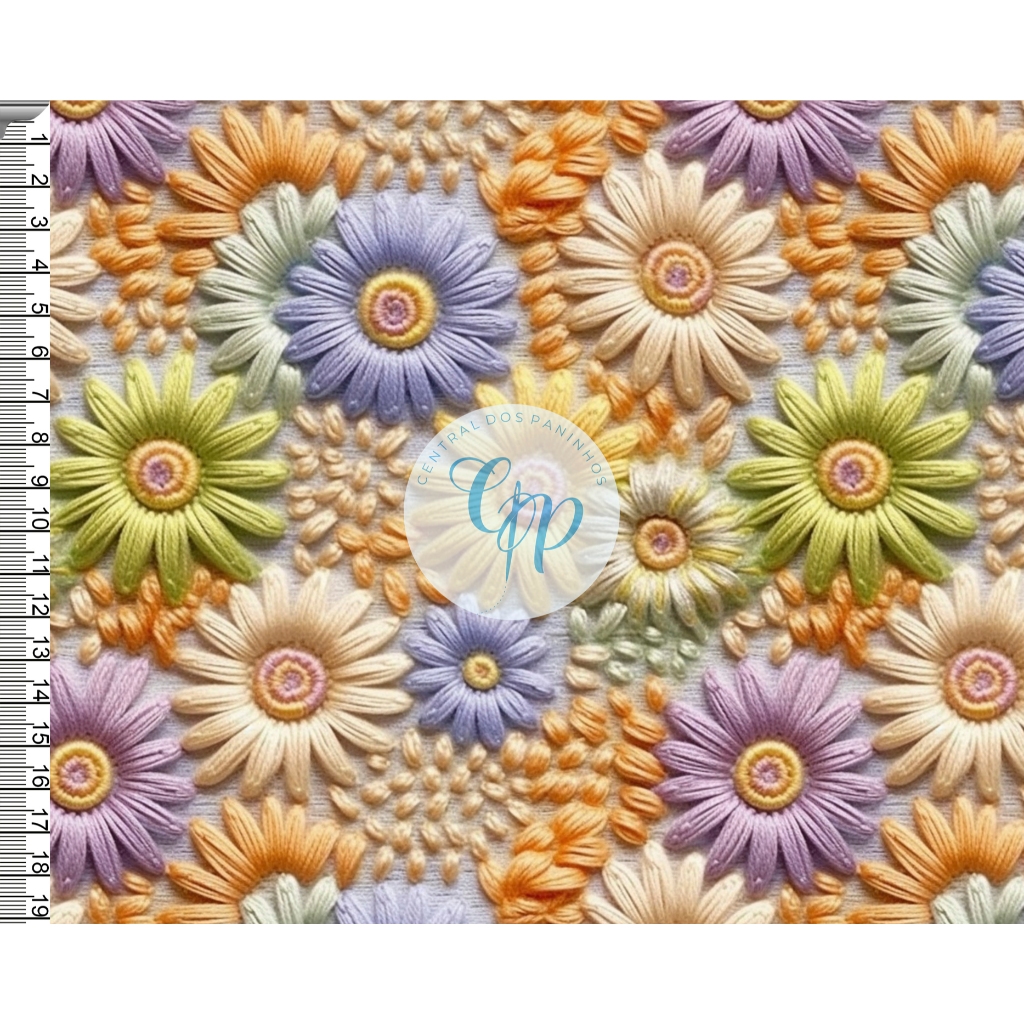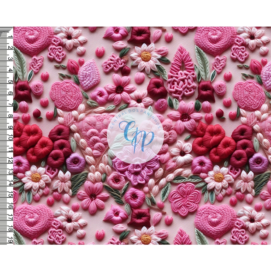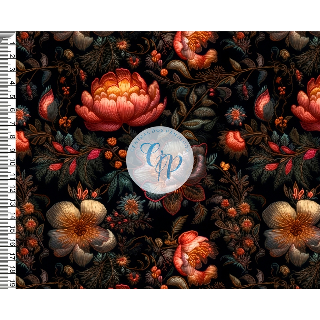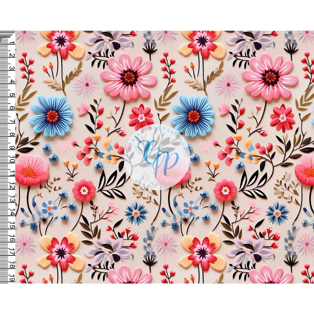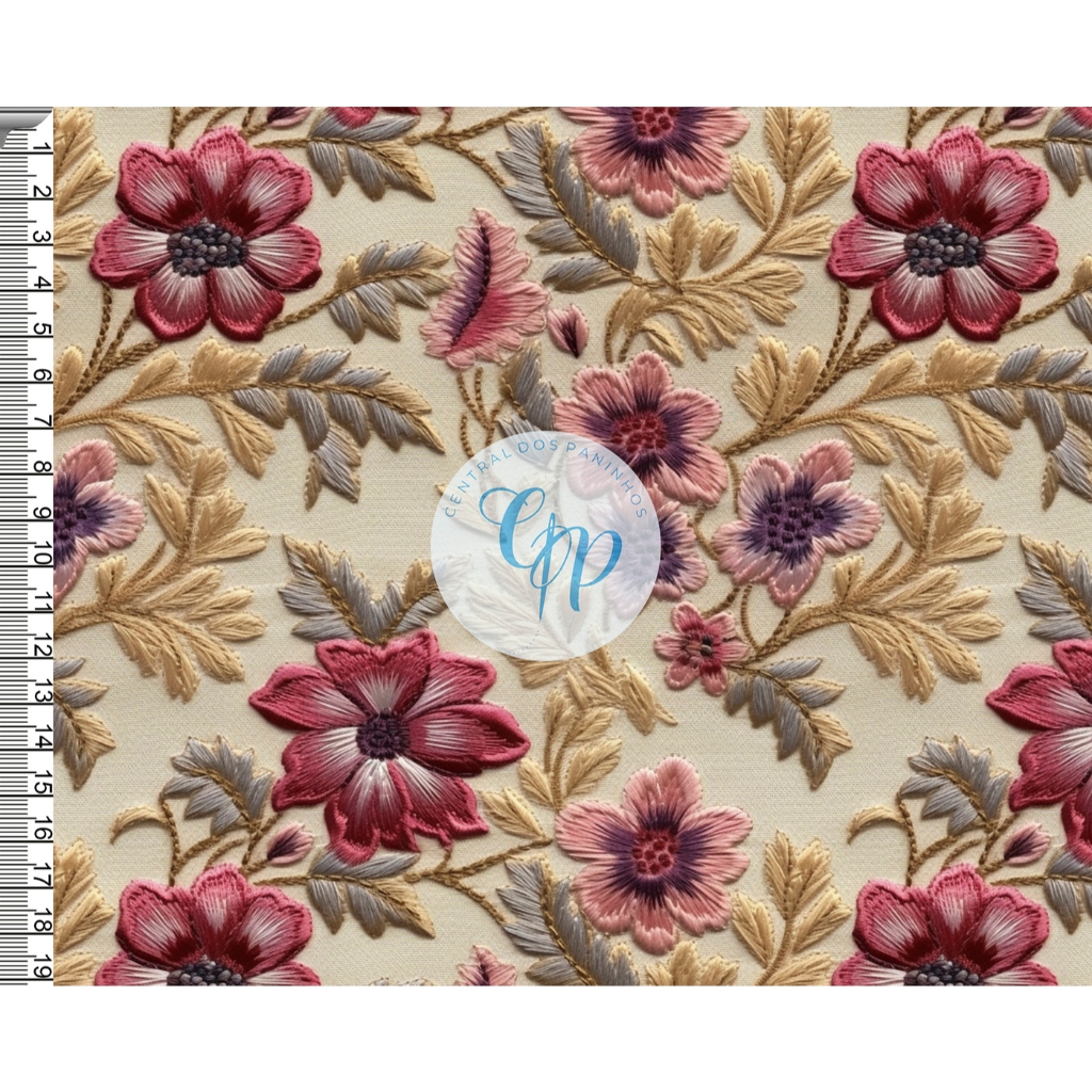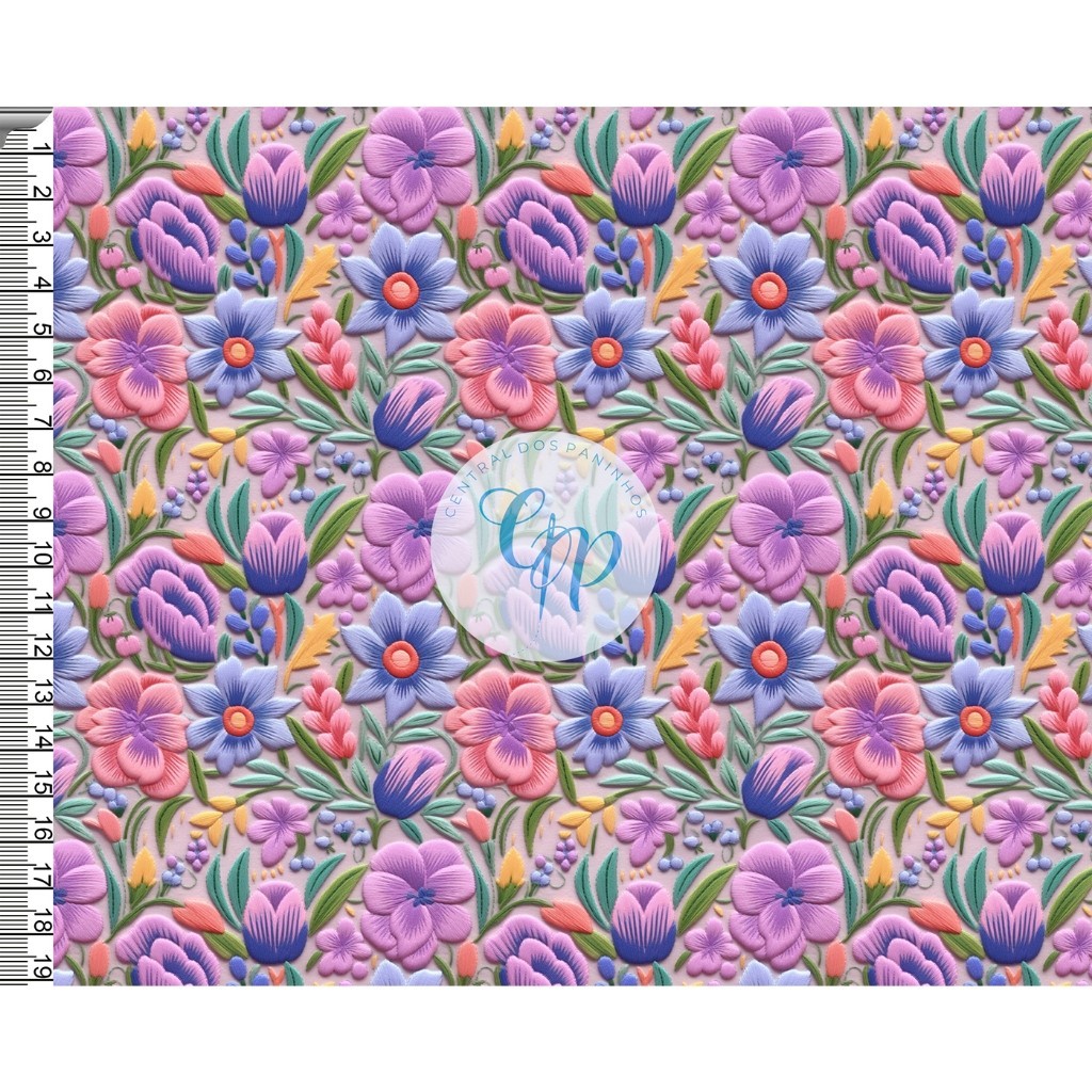 Tecido OXFORD estampado digital - Floral - Bordado - 3D