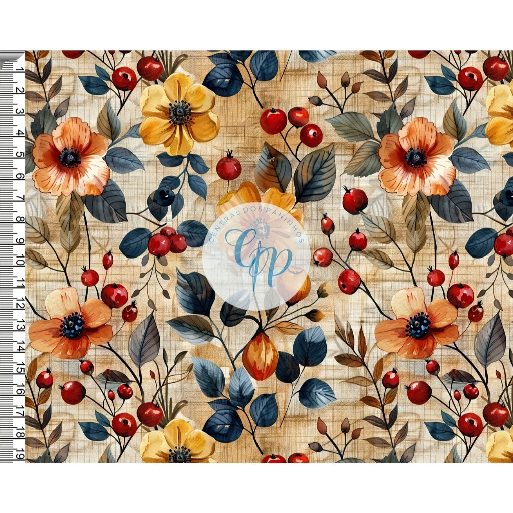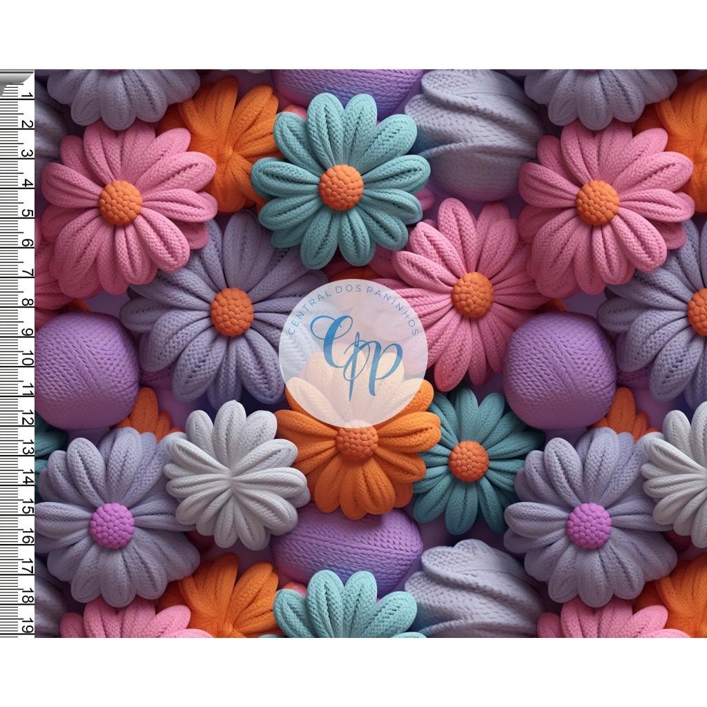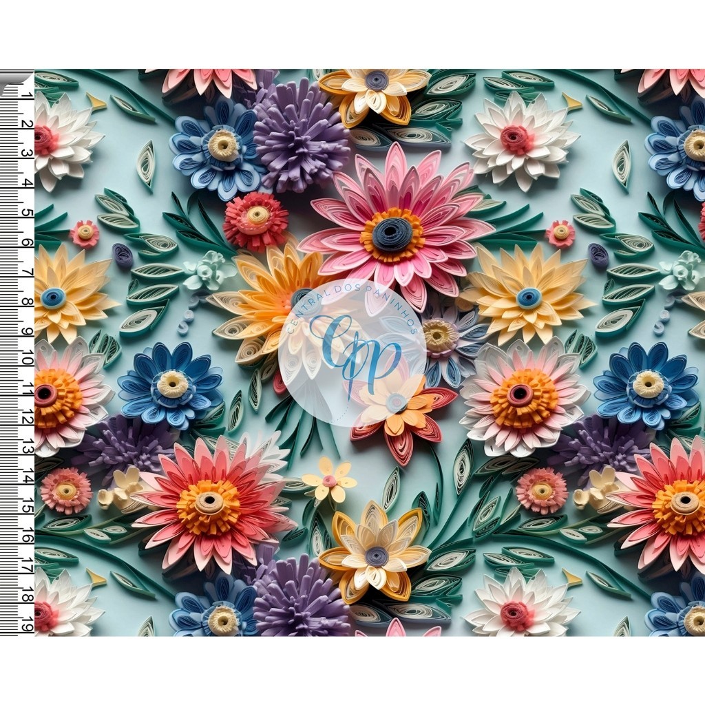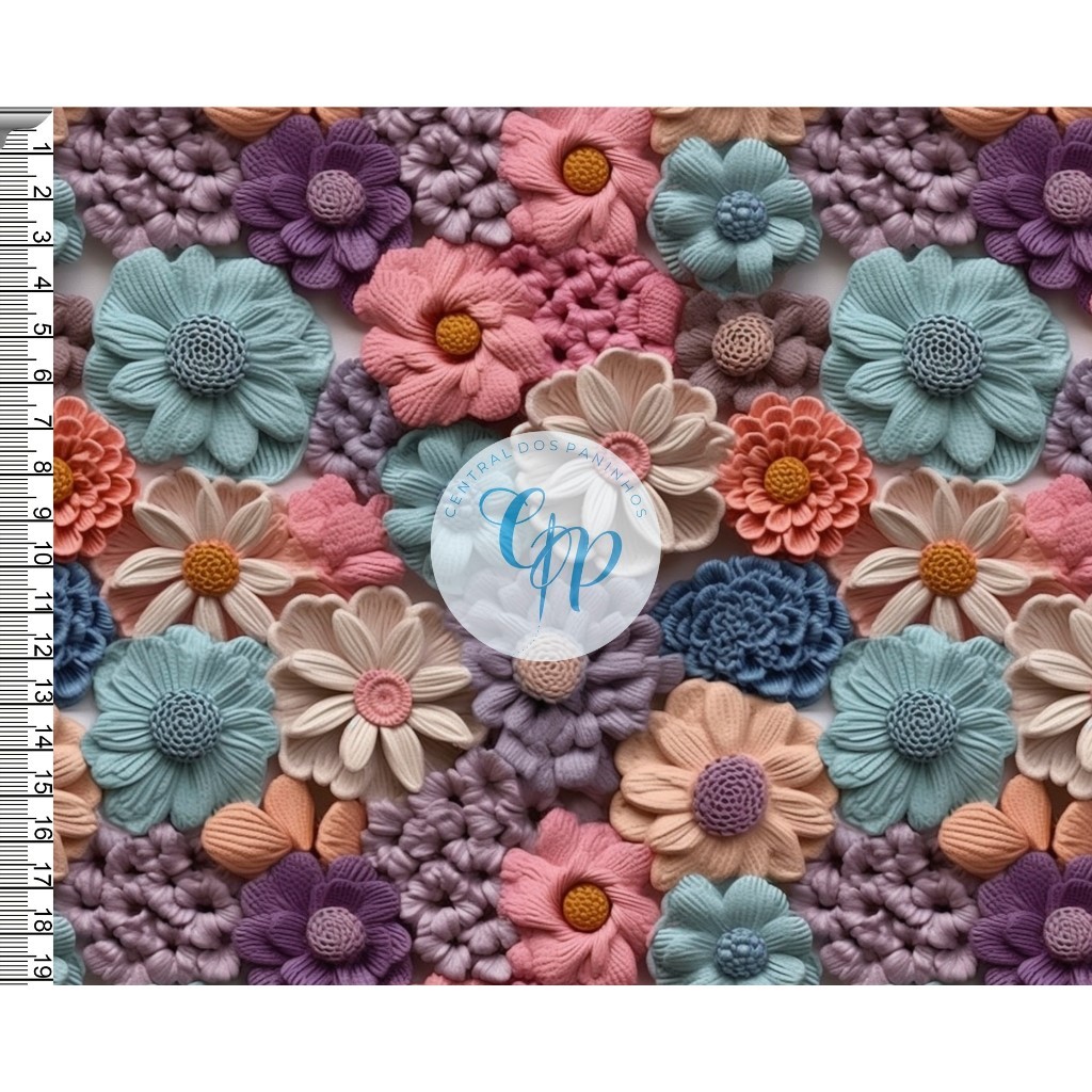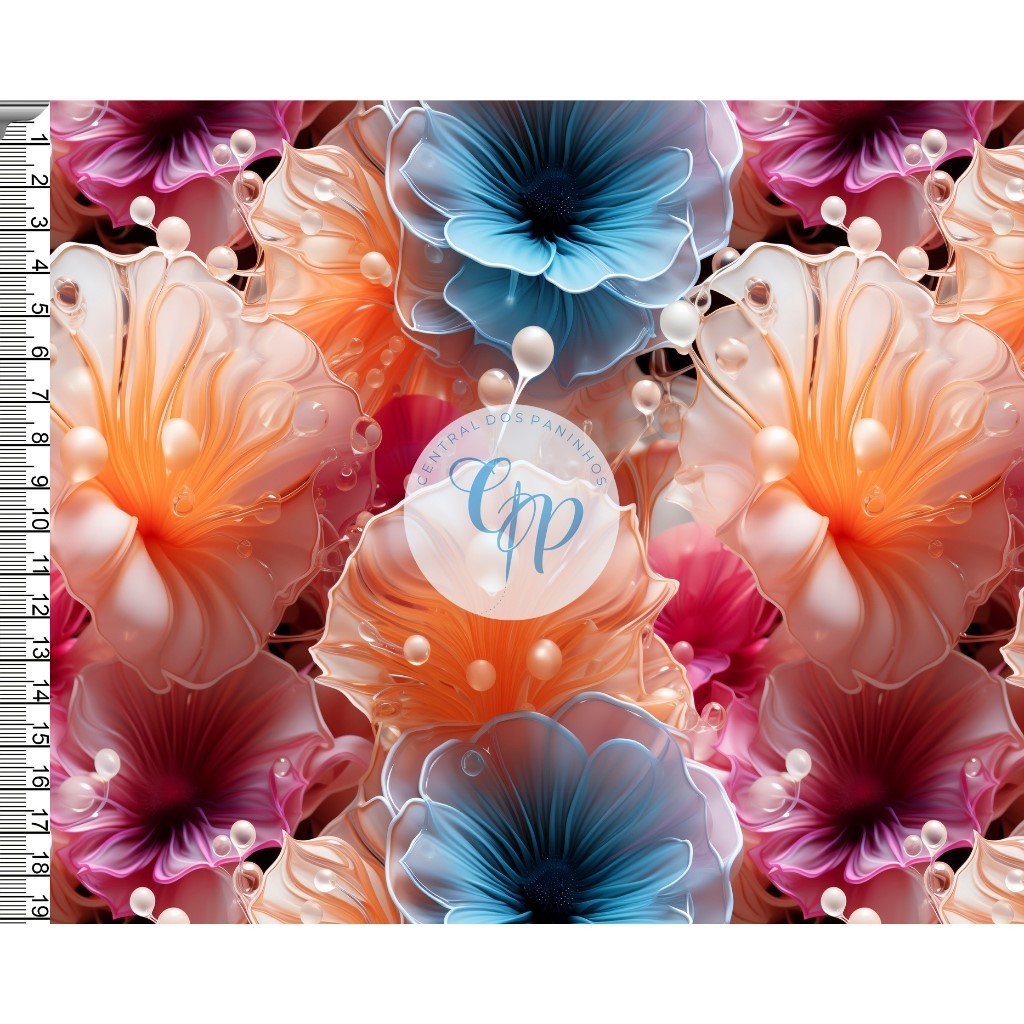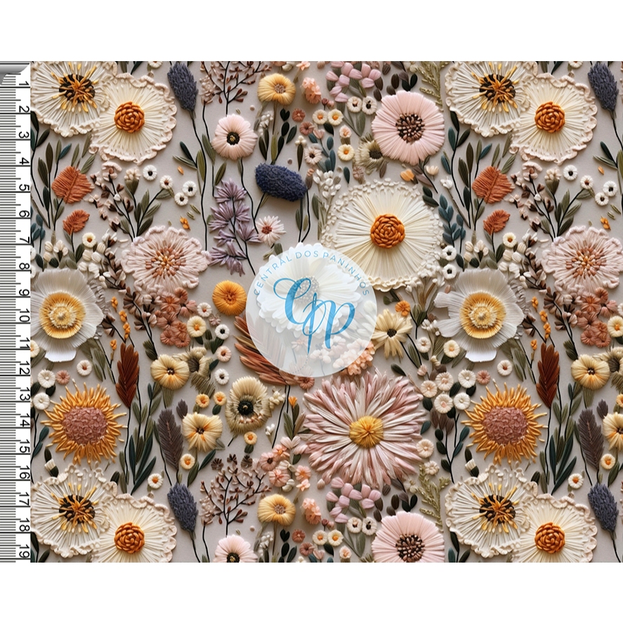 Tecido OXFORD estampado digital - Floral - Bordado - 3D