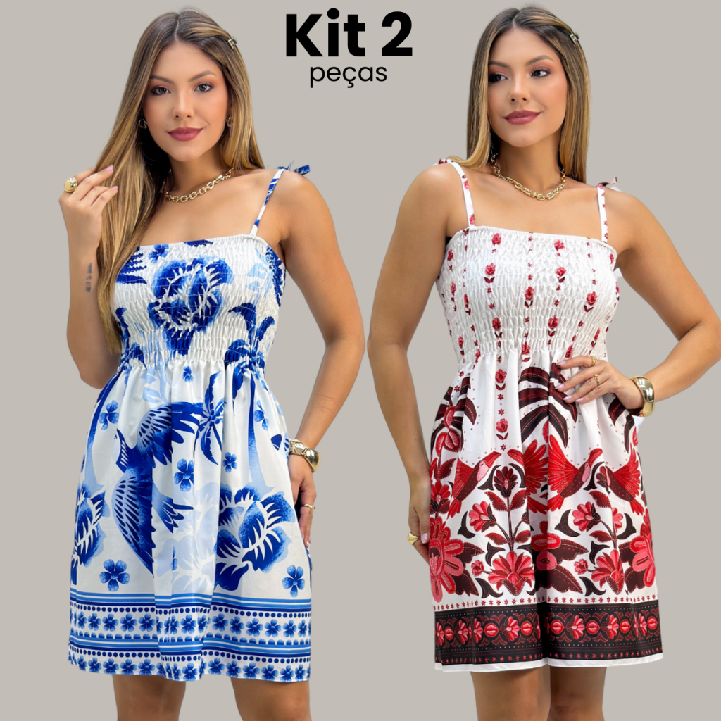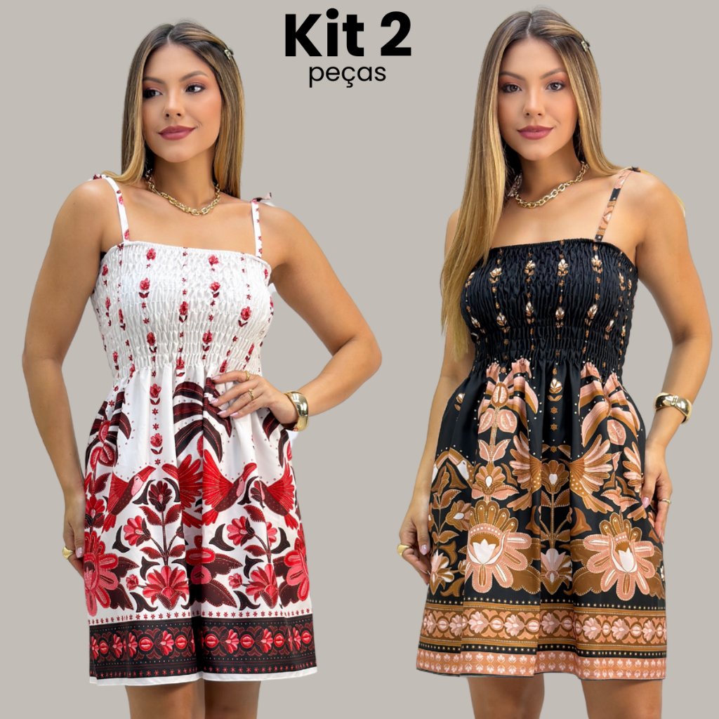 kit 2 Vestido Feminino Curto Estampado Com Alça de Regulagem