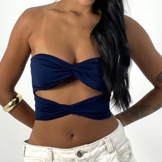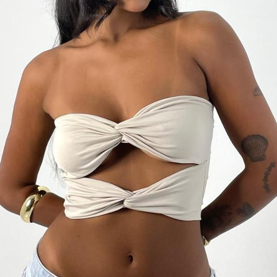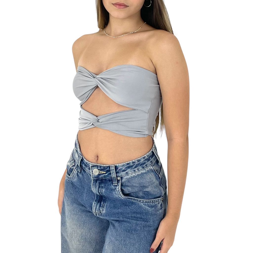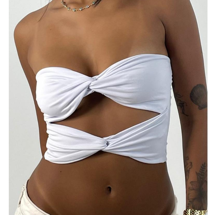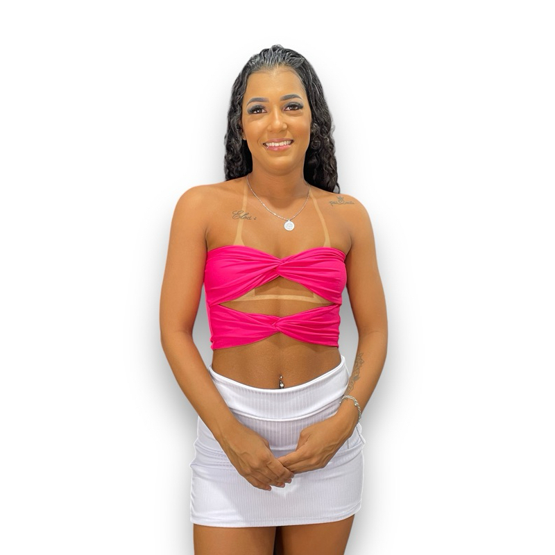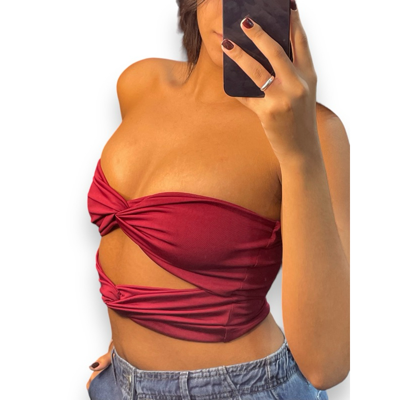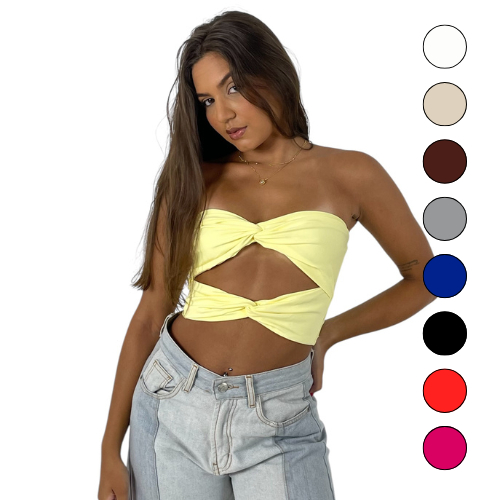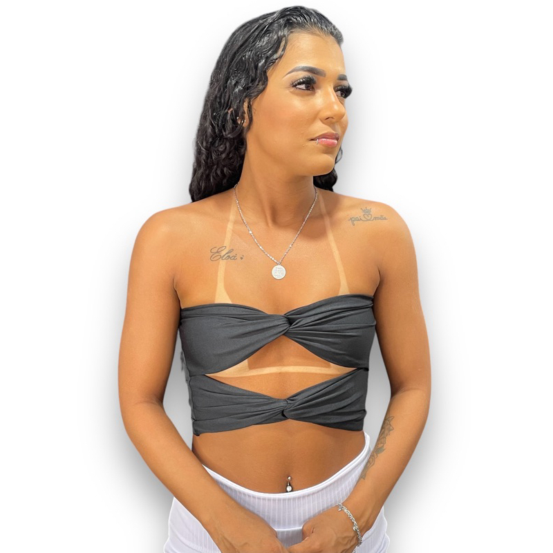 Top Cropped Nó Transpassado Tendência Feminino Moda Gringa Duplo Suplex Sem Bojo