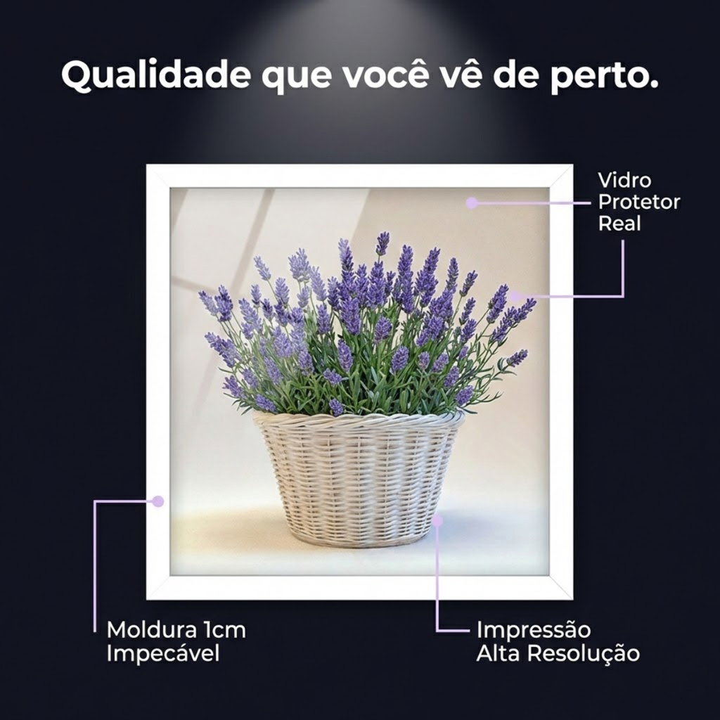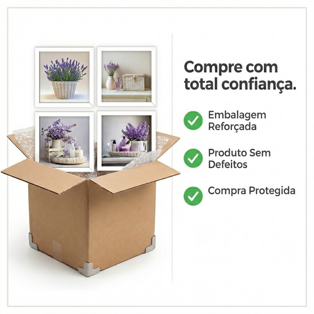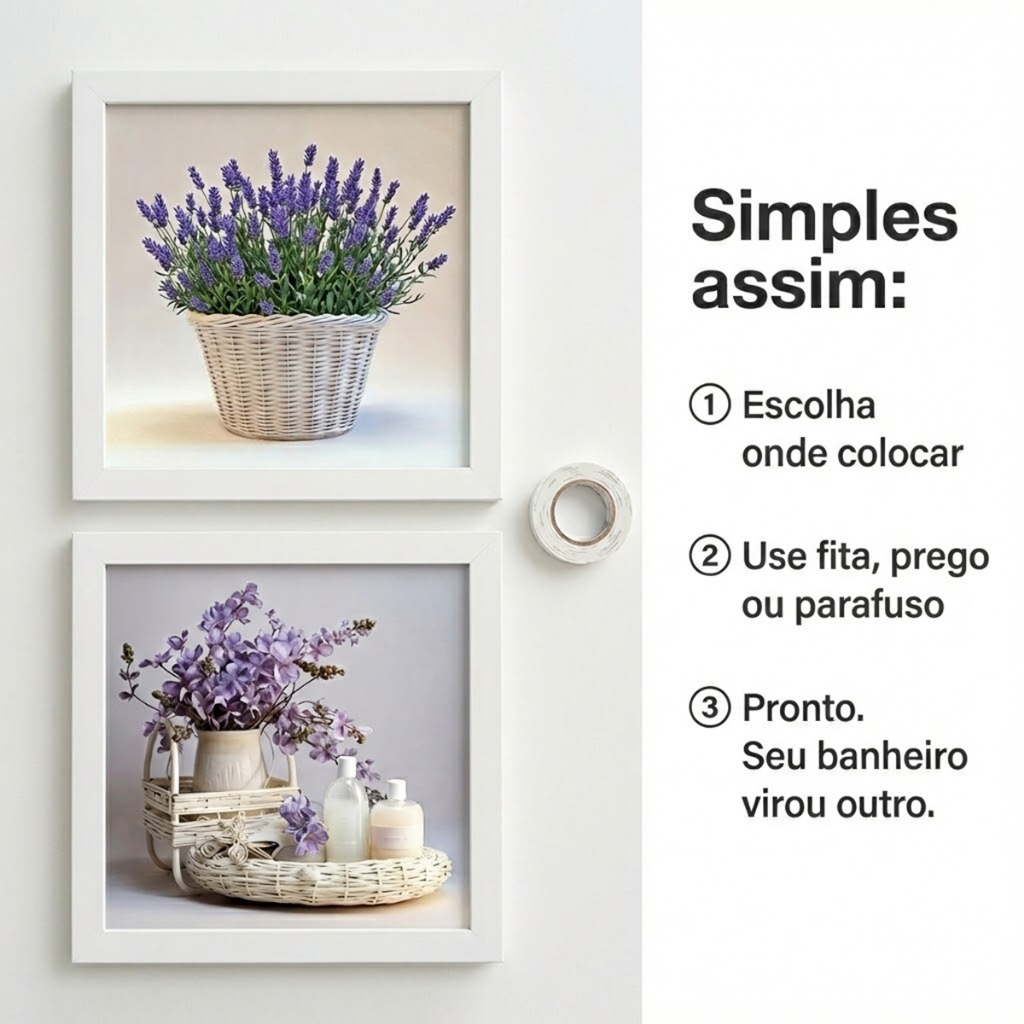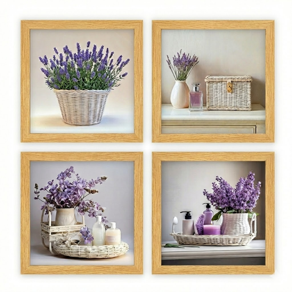 Kit 4 Quadros 18x18 cm banheiro, lavabo, flores lilás, vidro