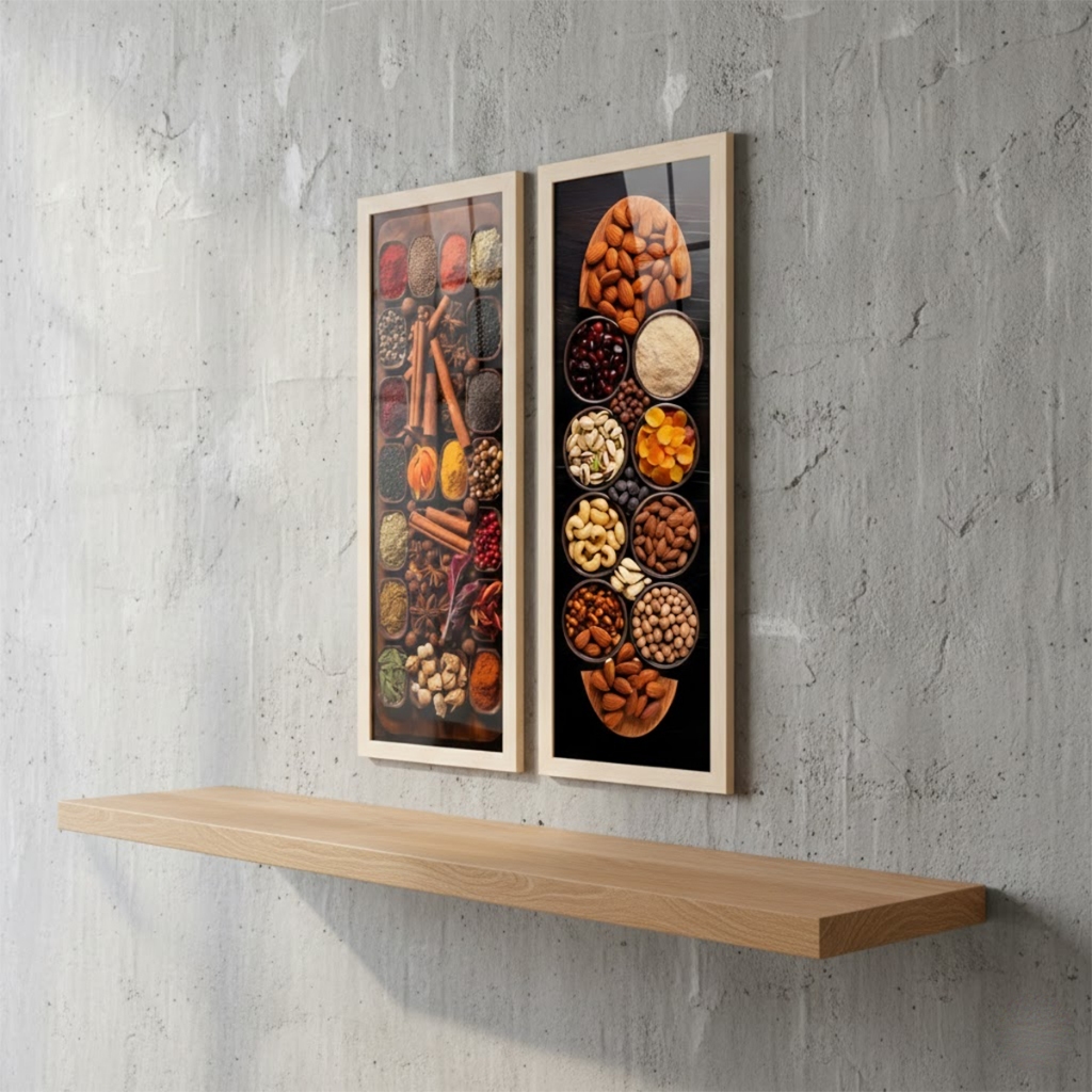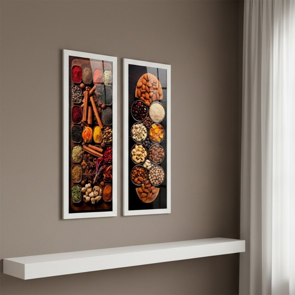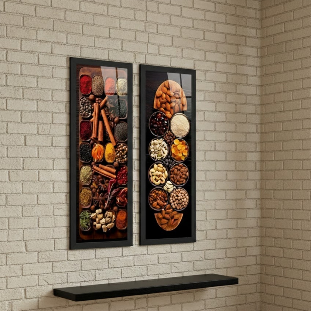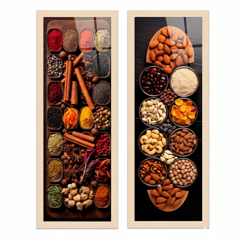 Kit 2 Quadros Copa, Cozinha, Área Gourmet, Temperos 2 moldura e vidro