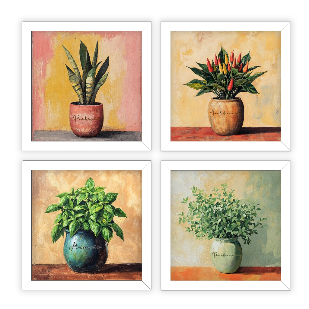 Kit 4 Quadros 18x18, pimenta, arruda, manjericão, são jorge