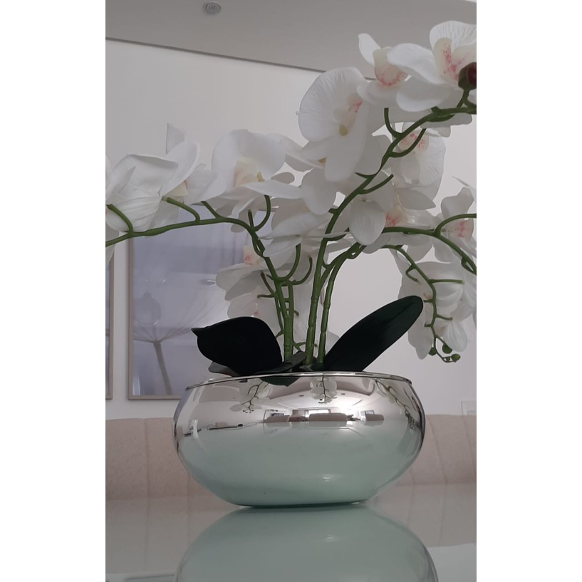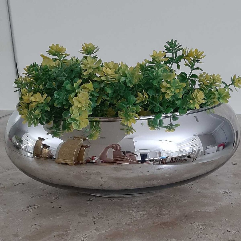 vaso em vidro espelhado prata modelo redondo 25 cm cachepot centro de mesa bacia cachepot
