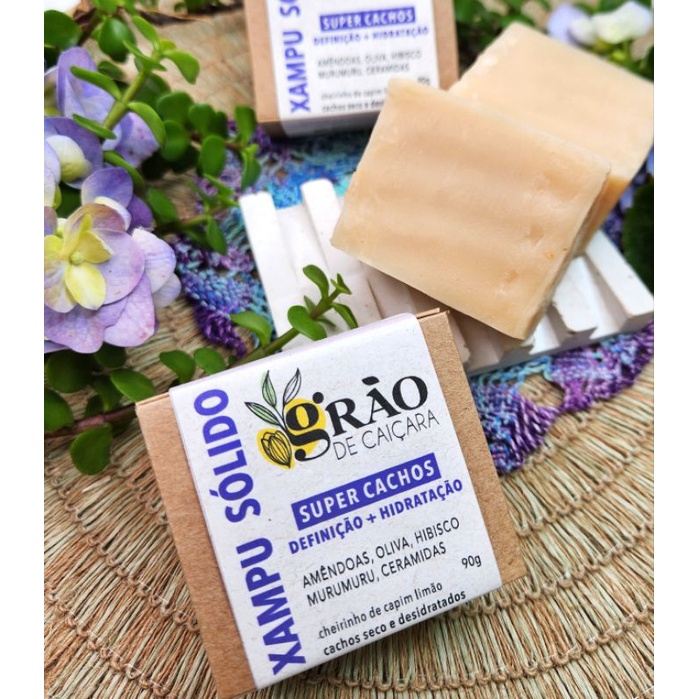 Xampu/Shampoo Sólido Vegano Super Cachos – Hidratação para Cacheados e Crespos
