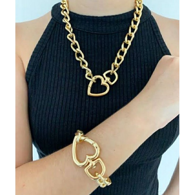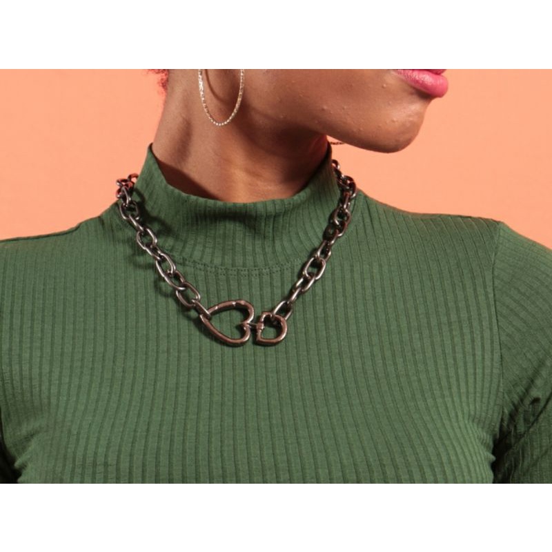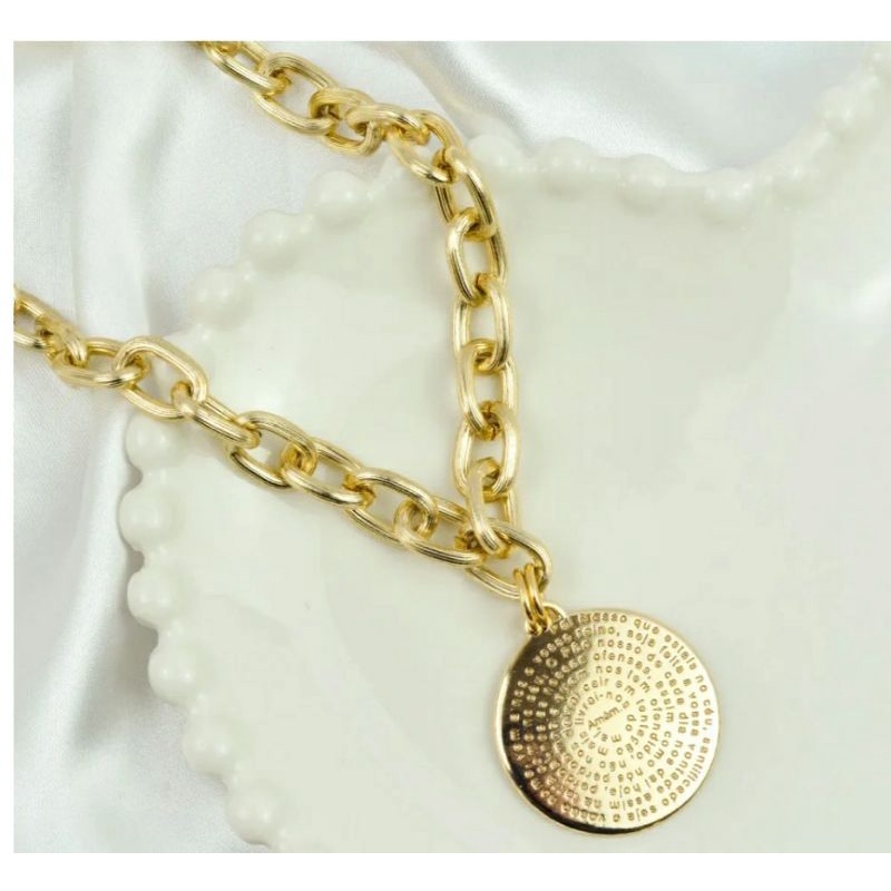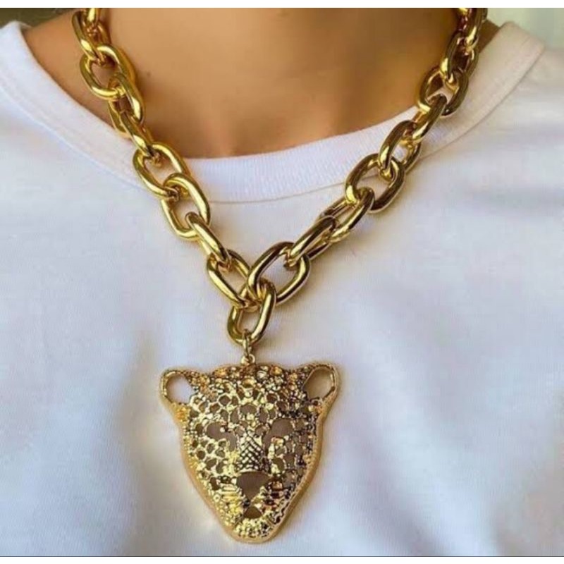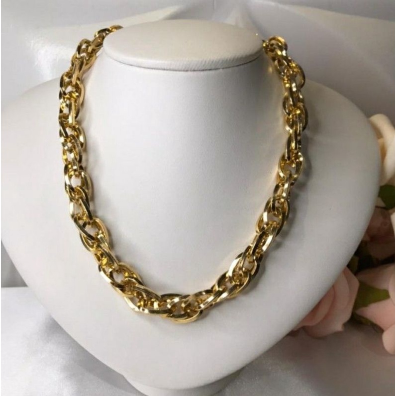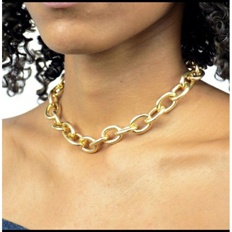 Colar Gargantilha Feminino folheado ouro 18K / Choker Corrente Elos Grossa Fecho Mosquetão luxo