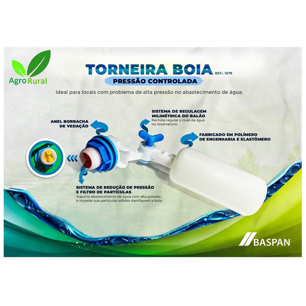 Torneira Boia Automatica 1/2" de Alta Pressão P/ Caixas de Água e Bebedouros