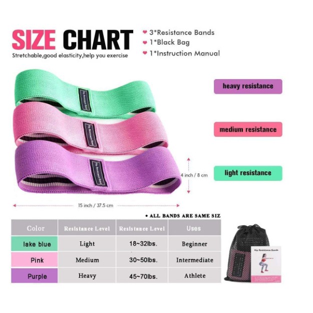 Kit 3 Faixas Elásticas De Exercício Hip Resistancia Bands
