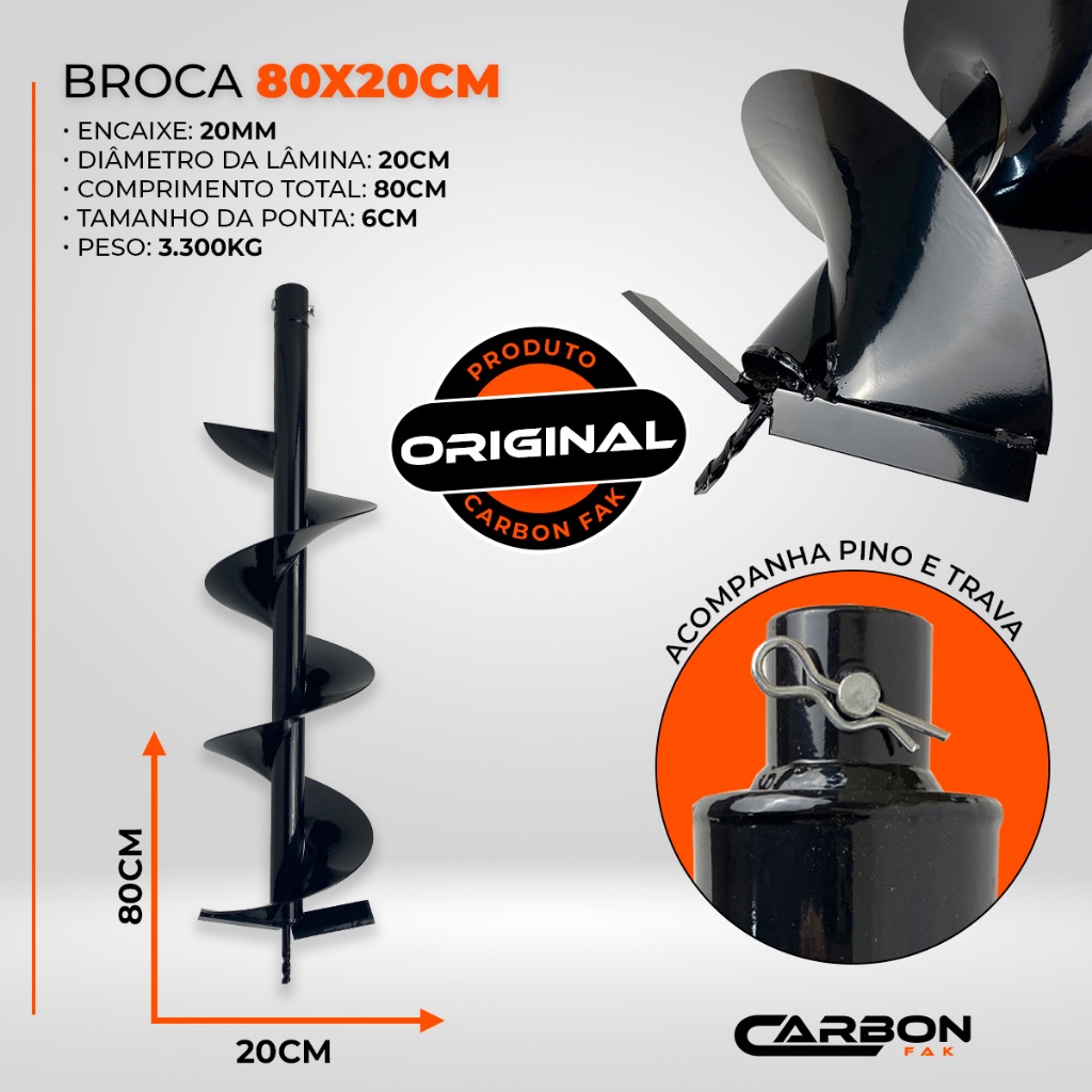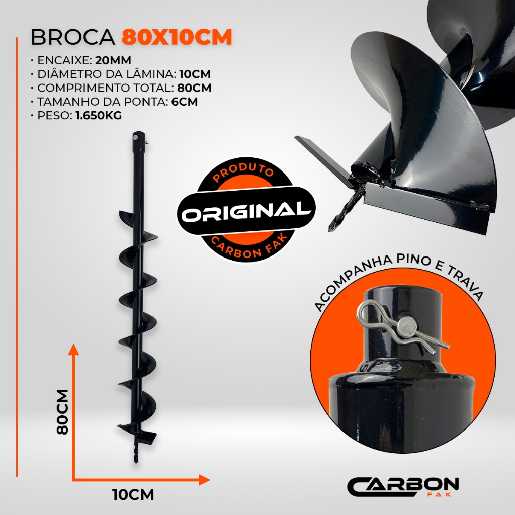 Perfurador de Solo a Gasolina 52cc 2,5HP Profissional com Brocas 80x10cm + 80x20cm + Extensão 1m Carbon Fak