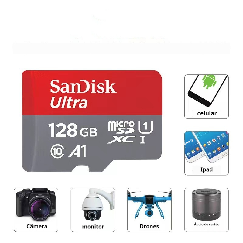 Cartão De Memória Sandisk Ultra A1 Classe 10 8gb / 16gb / 32gb / 64gb/ 128gb/ 256gb/ 512gb
