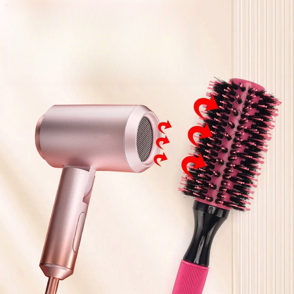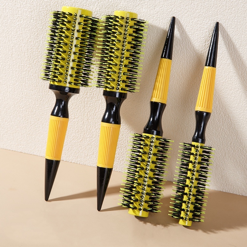 Escova De Cabelo Térmica Amarela Cerdas De Javali Mista Madeira