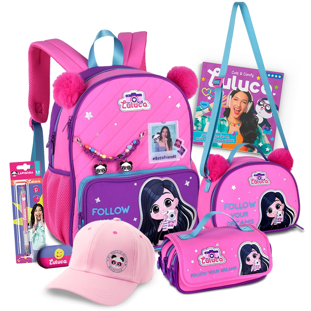 Kit Mochila Estojo Lancheira Térmica Luluca Infantil Youtuber Meninas Coleção 2026