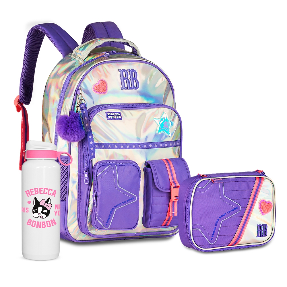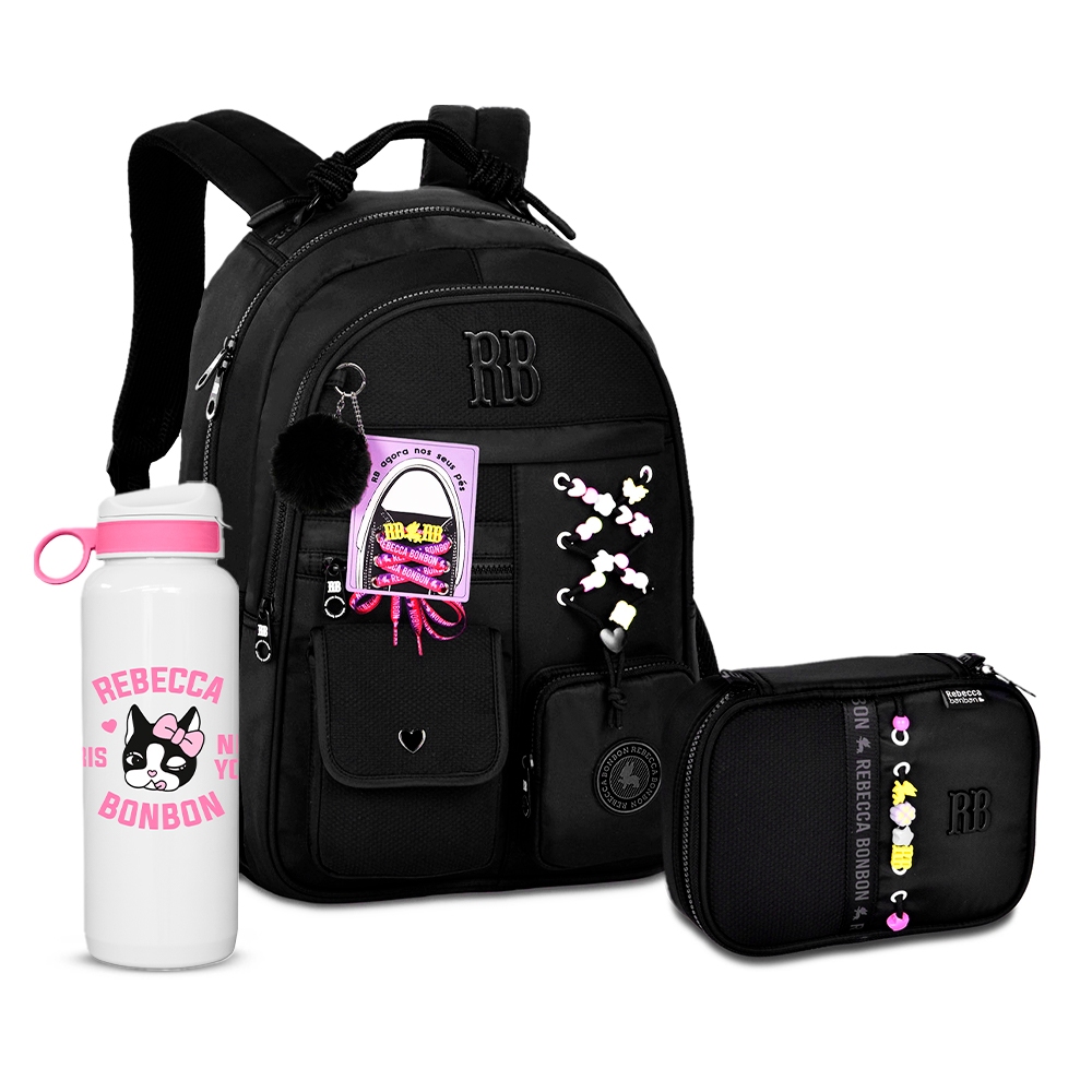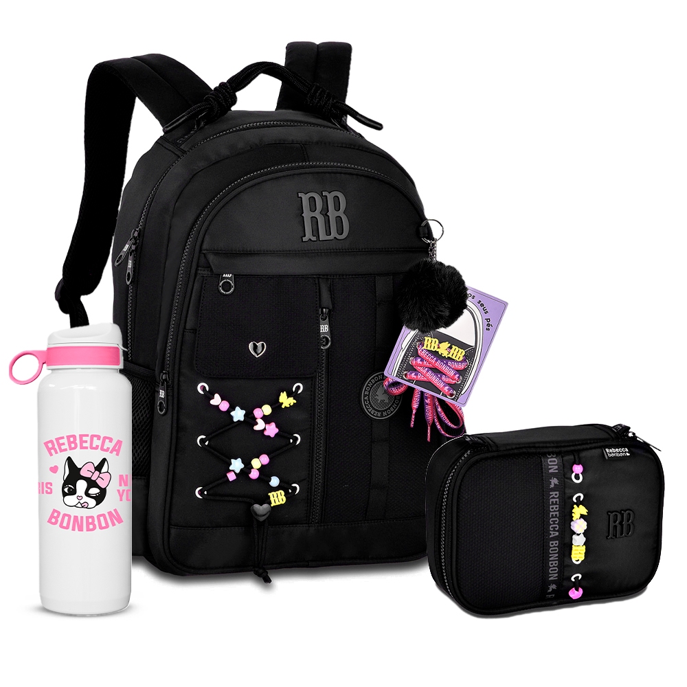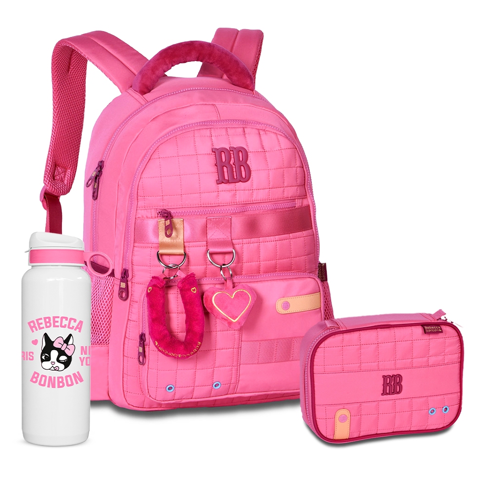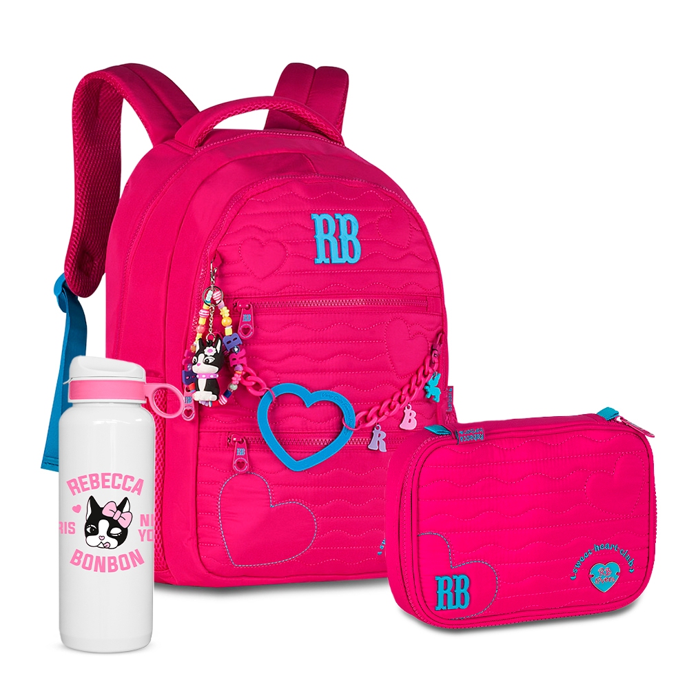 Kit Mochila Rebecca Bonbon Costas Chaveiro Alça Estojo Box Grande Escolar Girls Juveni