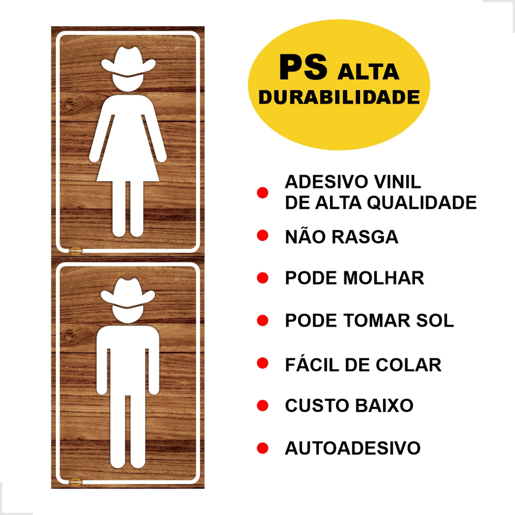 Placas Banheiro Masculino Feminino 10x15cm 15x20cm Chapéu Sertanejo Caipira Fazenda Novidade