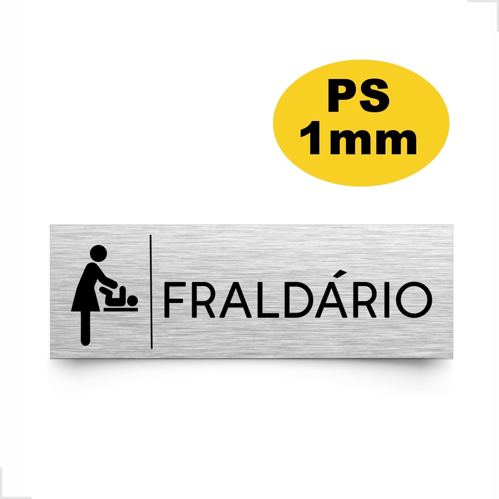 Placa Sinalização Fraldario Aço Escovado 30x10cm PS 1mm