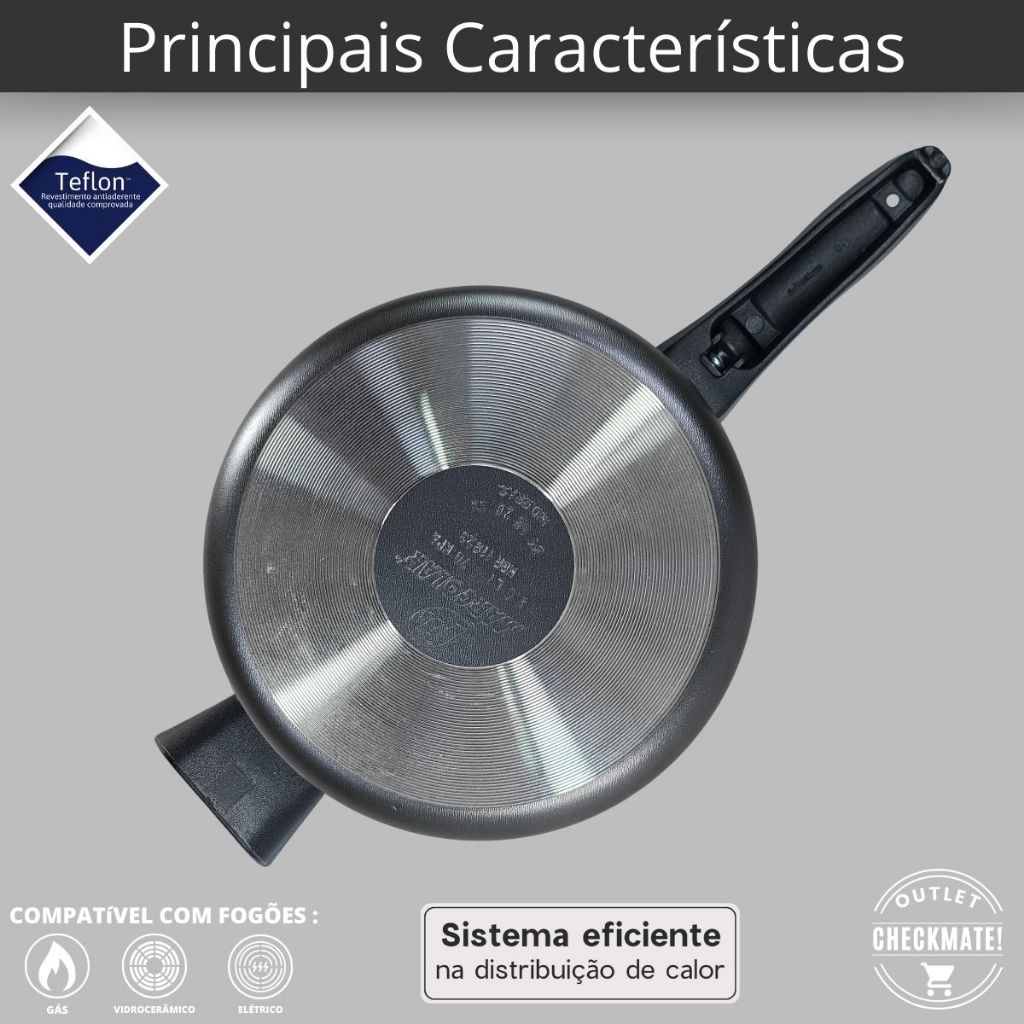 Panela De Pressão 10 Litros Antiaderente Com 5 Camadas De Teflon Cor Preto Grafite