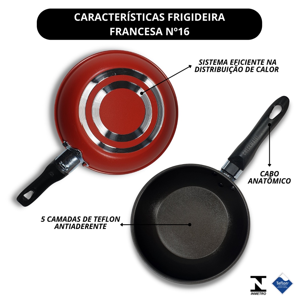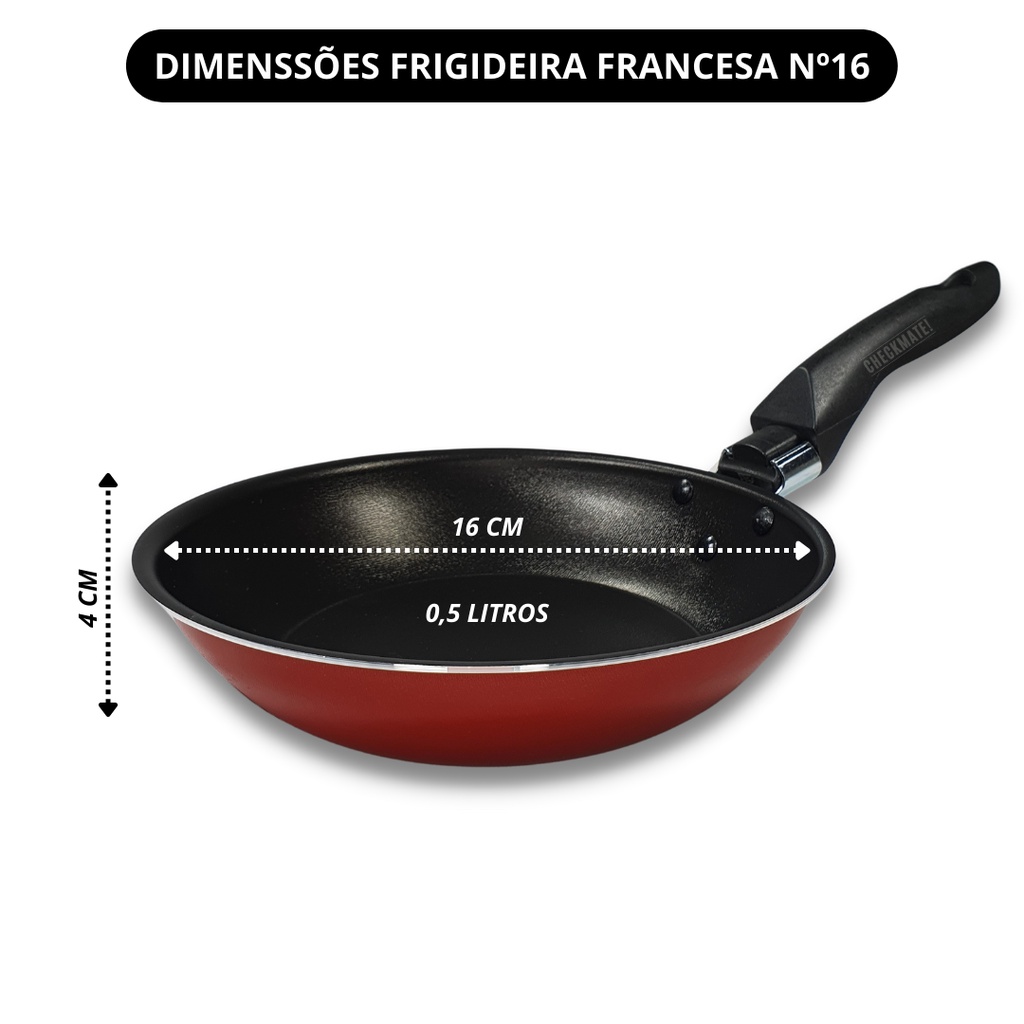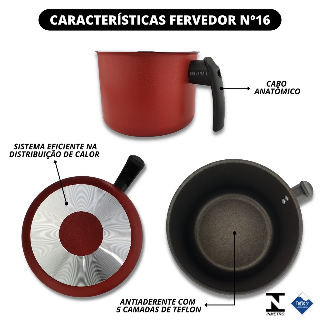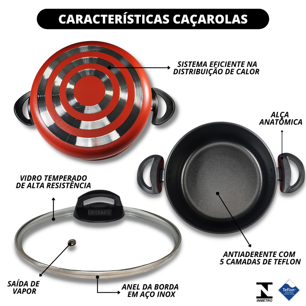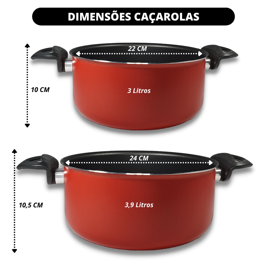 Kit Panelas Caçarolas 22 e 24 cm com Tampa de Vidro, Caneco 16 cm e Frigideira 16 cm Antiaderente Teflon Vermelho