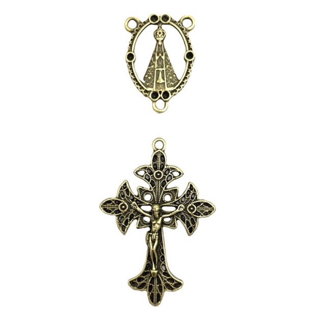 Kit c/ 25 Crucifixo + 25 Entremeio NSa Aparecida Ouro Velho