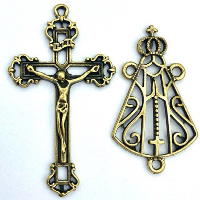 25 Crucifixos + 25 Entremeios Nsa Aparecida Vazada Modelo Novo Ouro velho