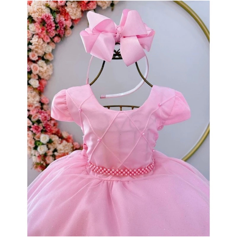 Vestido Rosa Festa Infantil Saia com Glitter Princesas