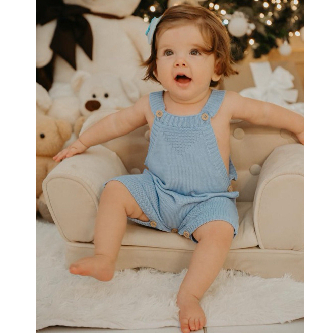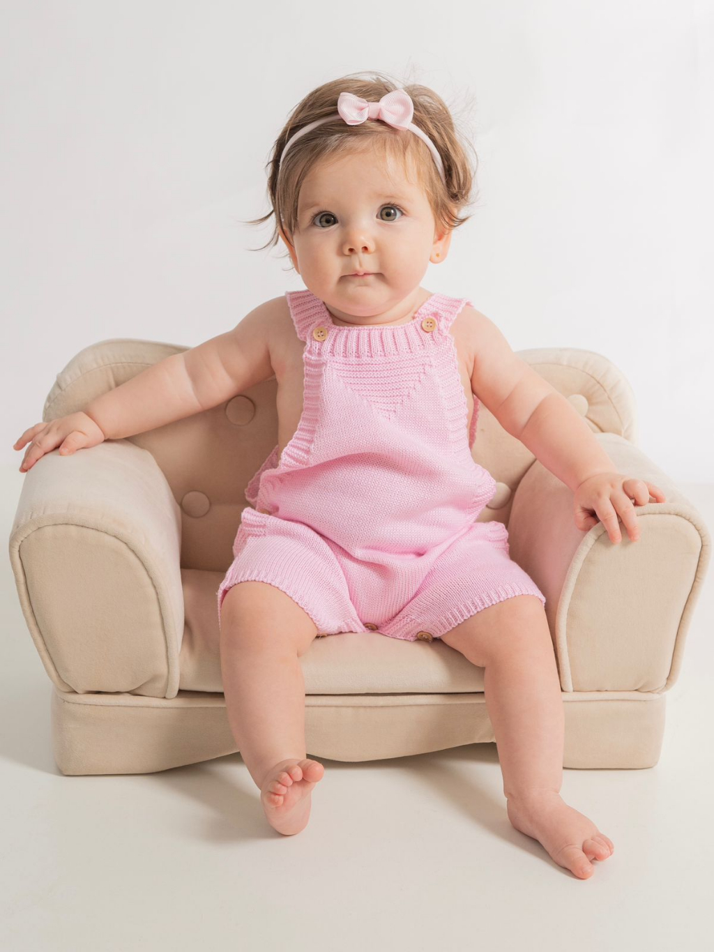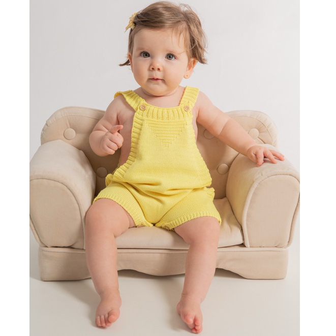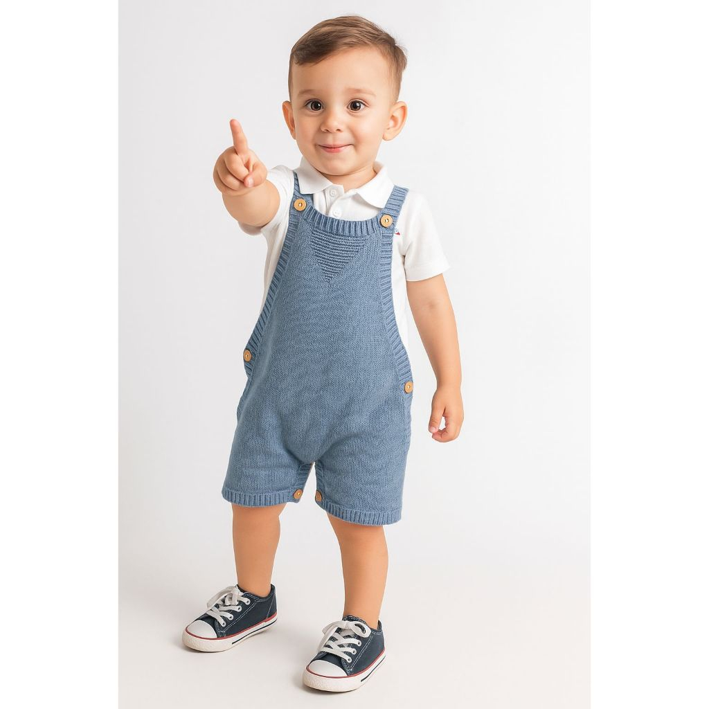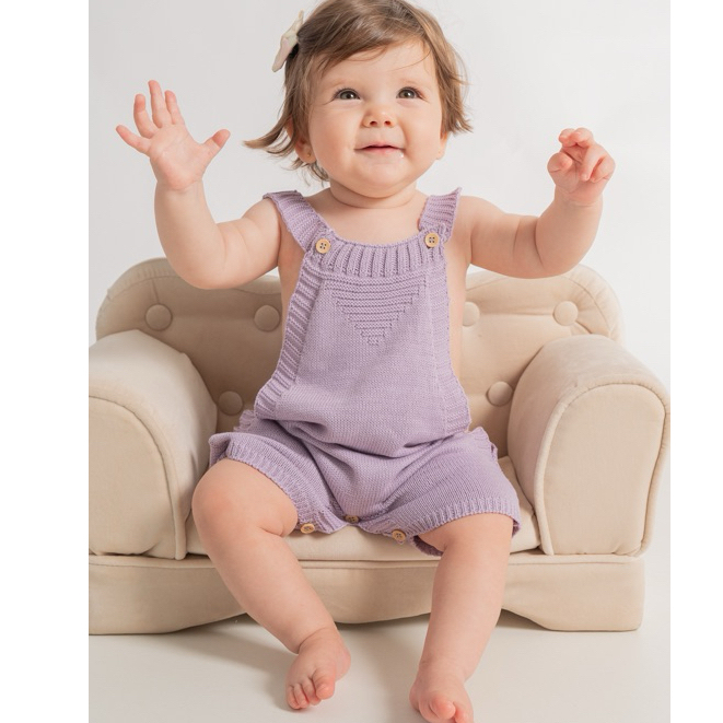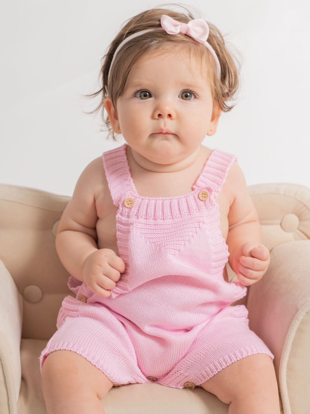 Jardineira Romper Bebê Tricô Menino e Menina 3 Meses a 1 ano