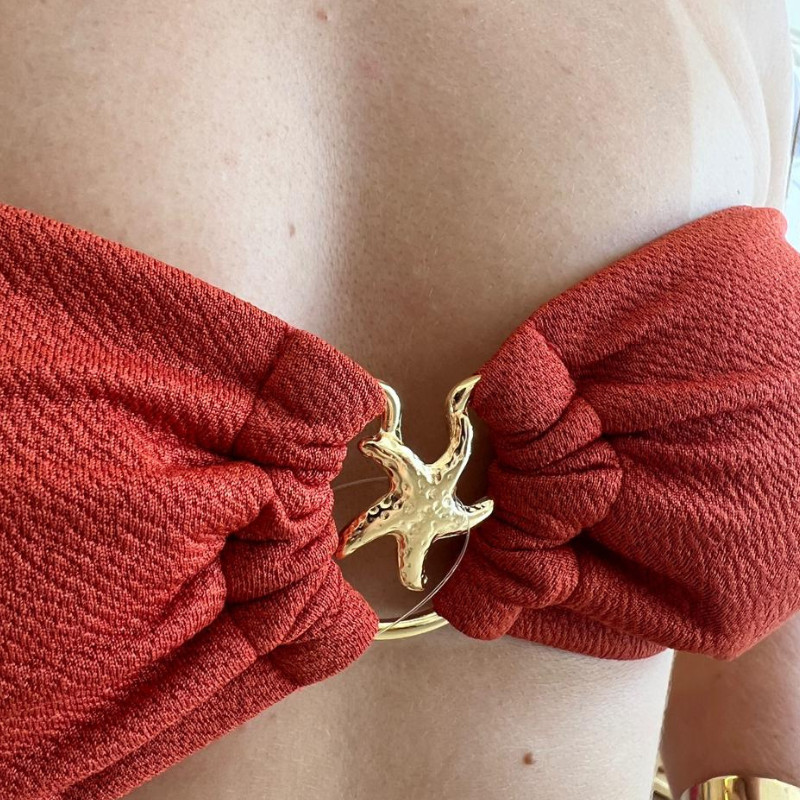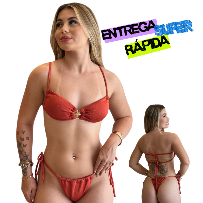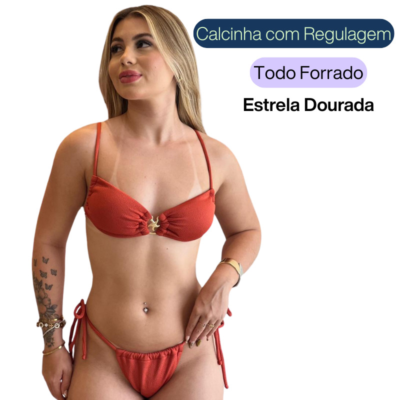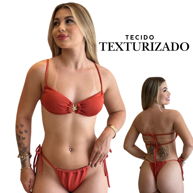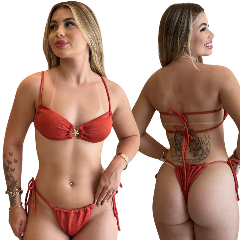 Conjunto de Biquíni Estrela top fita Luxo Feminino de Amarrar Tecido com Textura anarruga