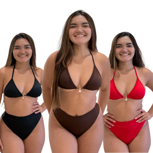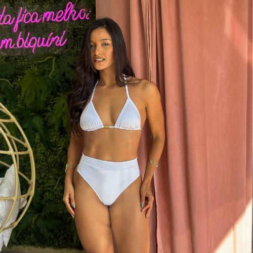 Biquíni Cortininha com Bojo Removível e Calcinha Hot Pant Cintura Alta Poliamida Elástica com pala