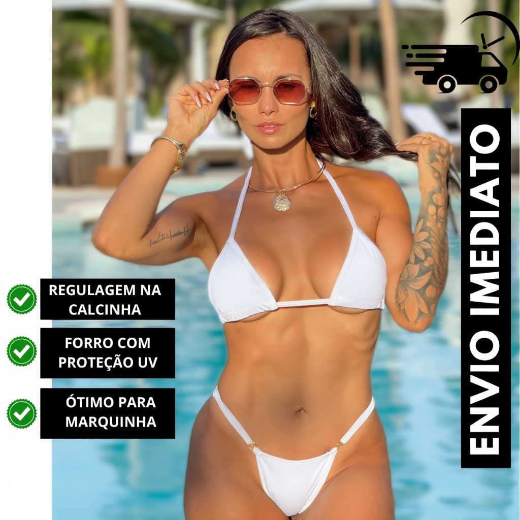 Biquíni Feminino Cortininha Dupla com Bojo tecido poliamida de qualidade Calcinha Alta Modeladora