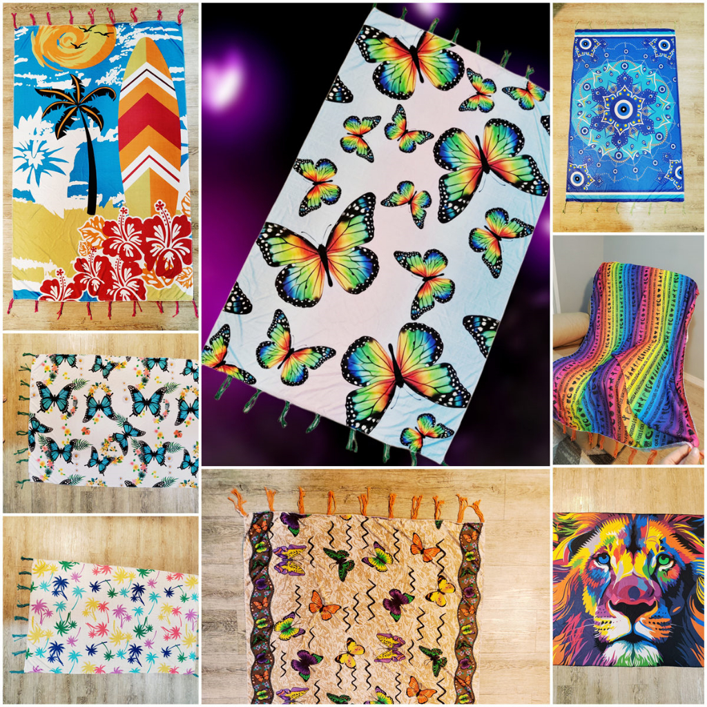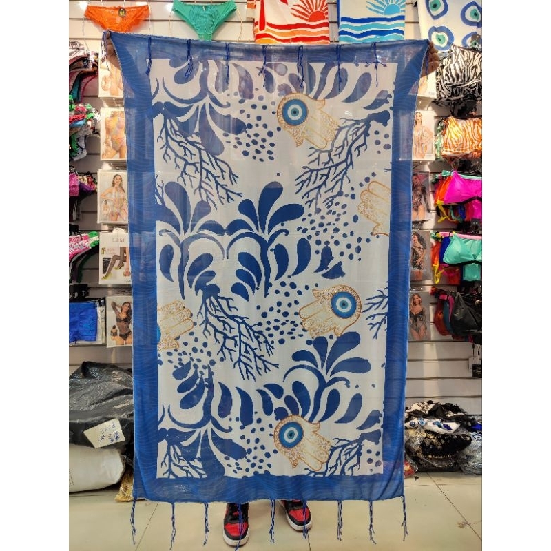 Canga de Praia estampado com franjas Multicoloridas com variações de estampas escolher