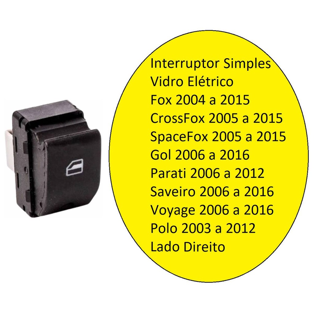 Interruptor Simples Vidro Eletrico Gol 06 16 Fox 04 15 Lado Direito