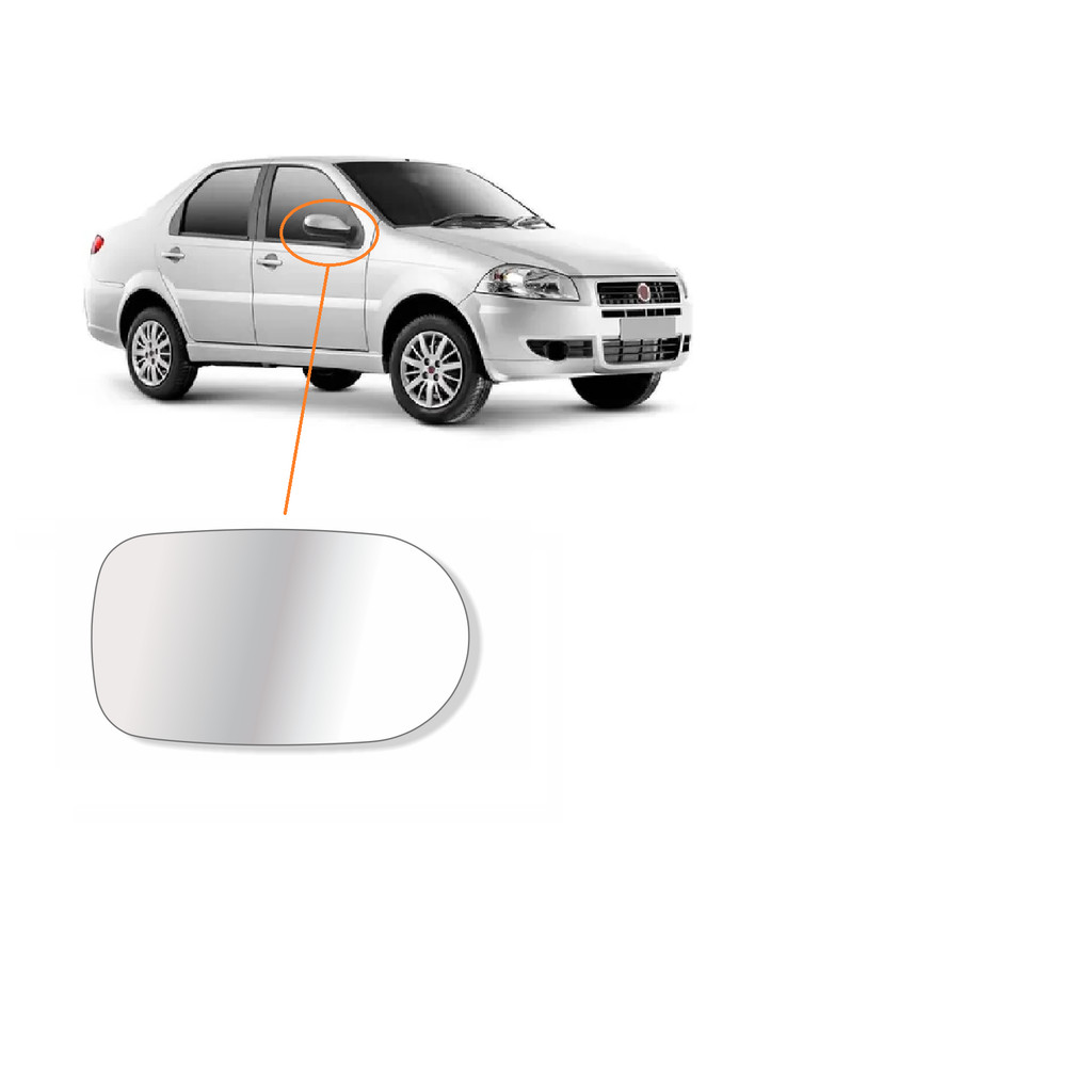 Lente Espelho Retrovisor Palio Siena Strada 2001 02 03 04 05 06 07 08 09 2010 Com Base Lado Direito