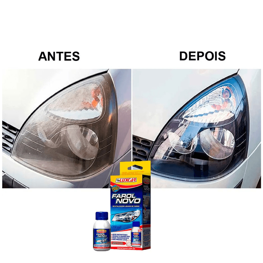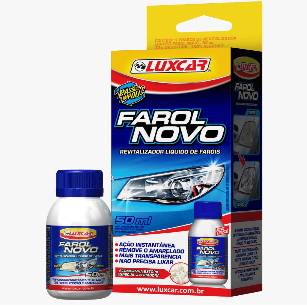 Revitalizador liquido farol novo Luxcar limpa e restaura amarelado fosco