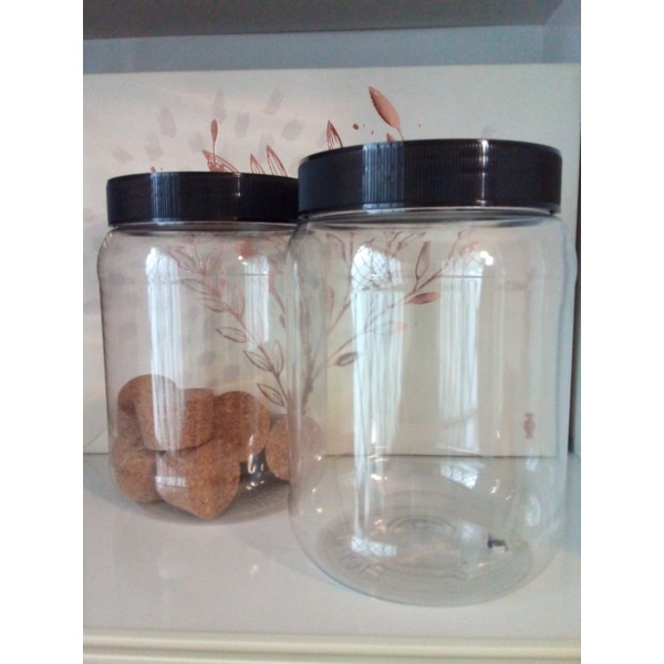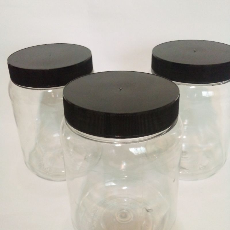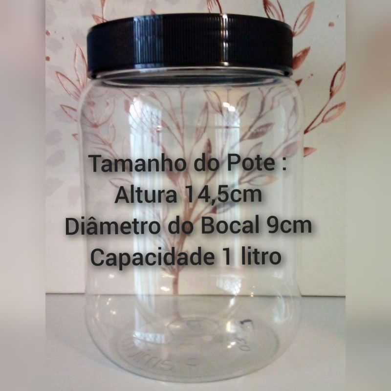 03 Potes Pet Plástico 1 litro C/Tampa Preta Conservas Grãos Biscoito