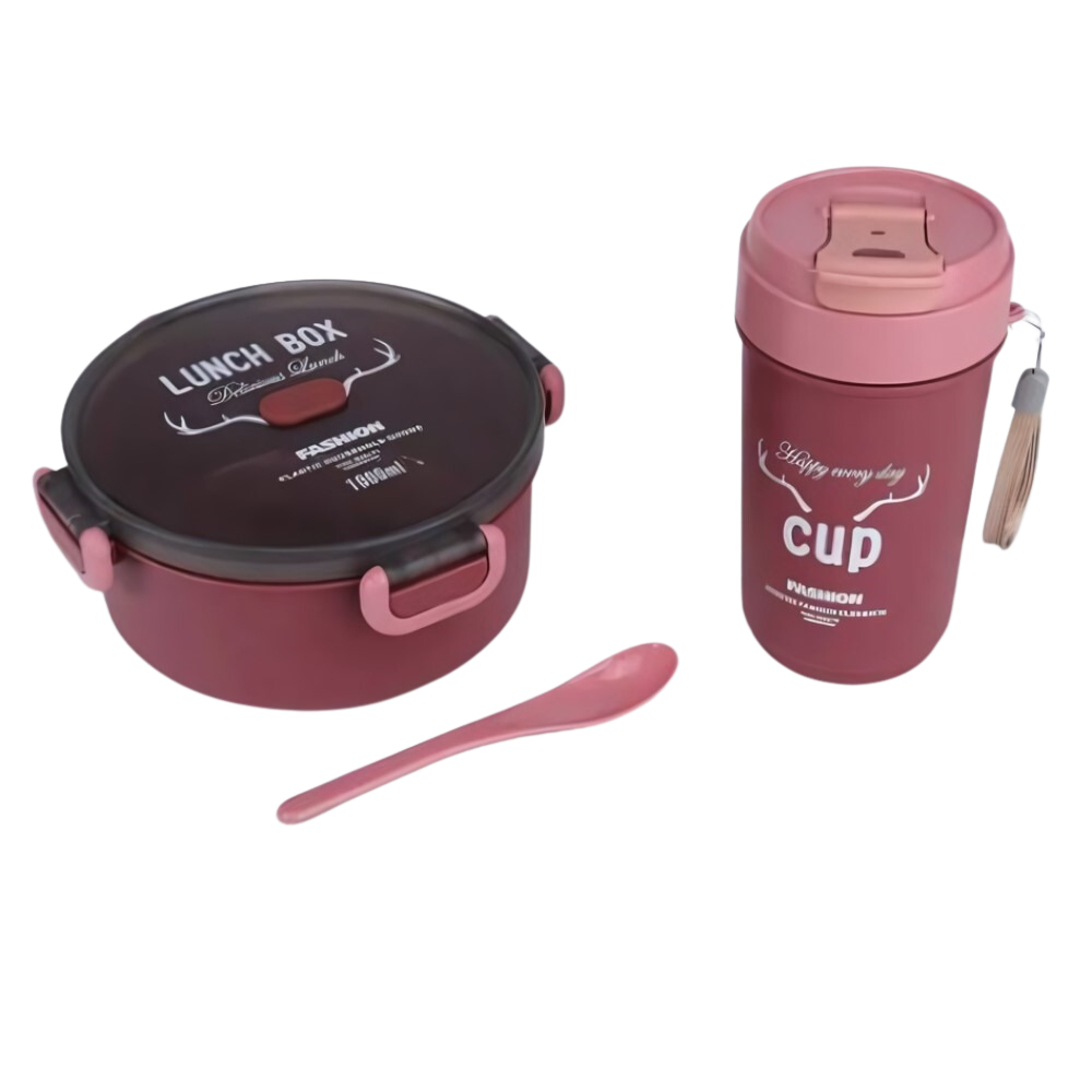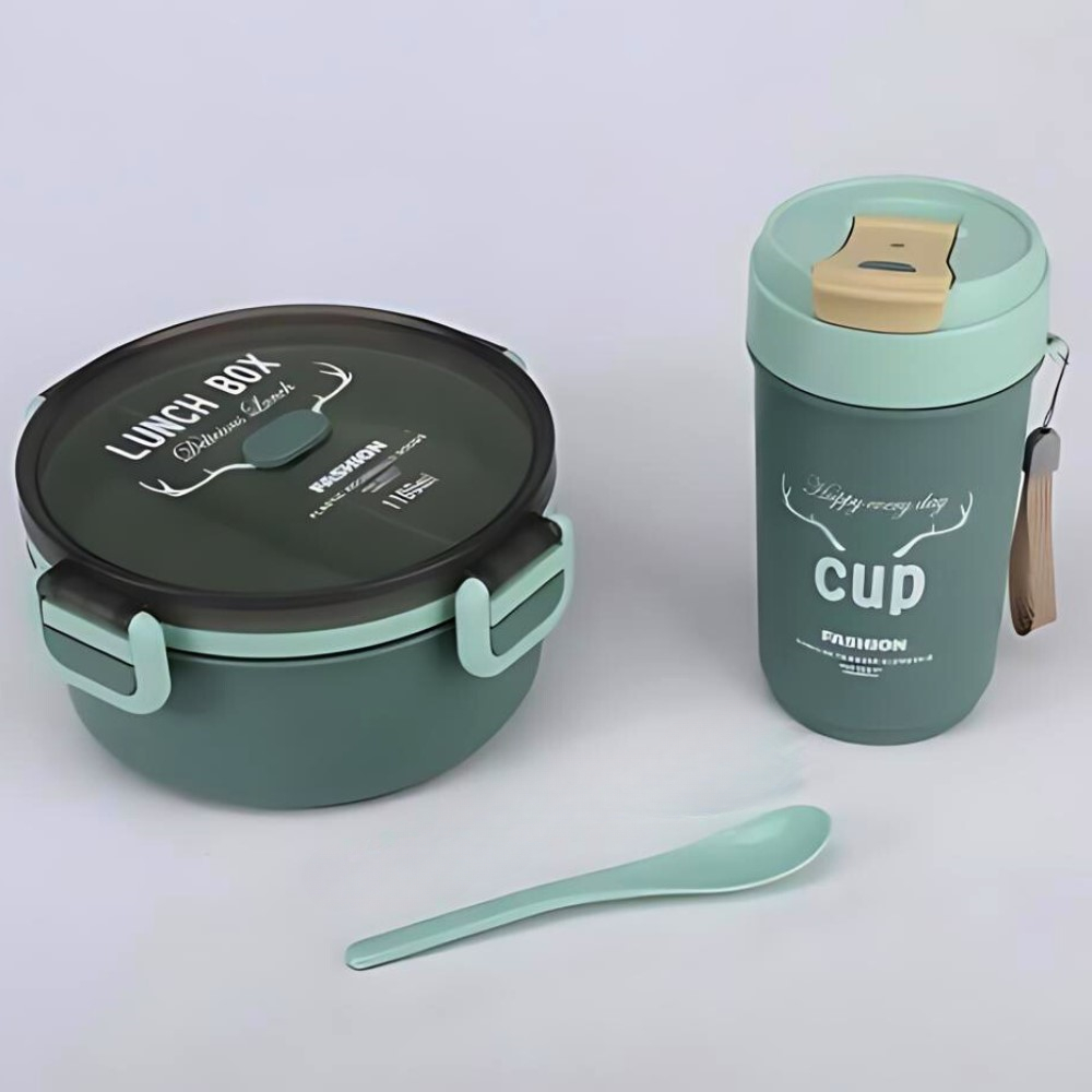 Conjunto Marmita De Plastico Redondo Com Colher E Copo