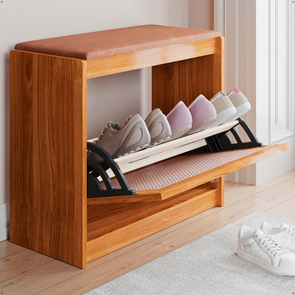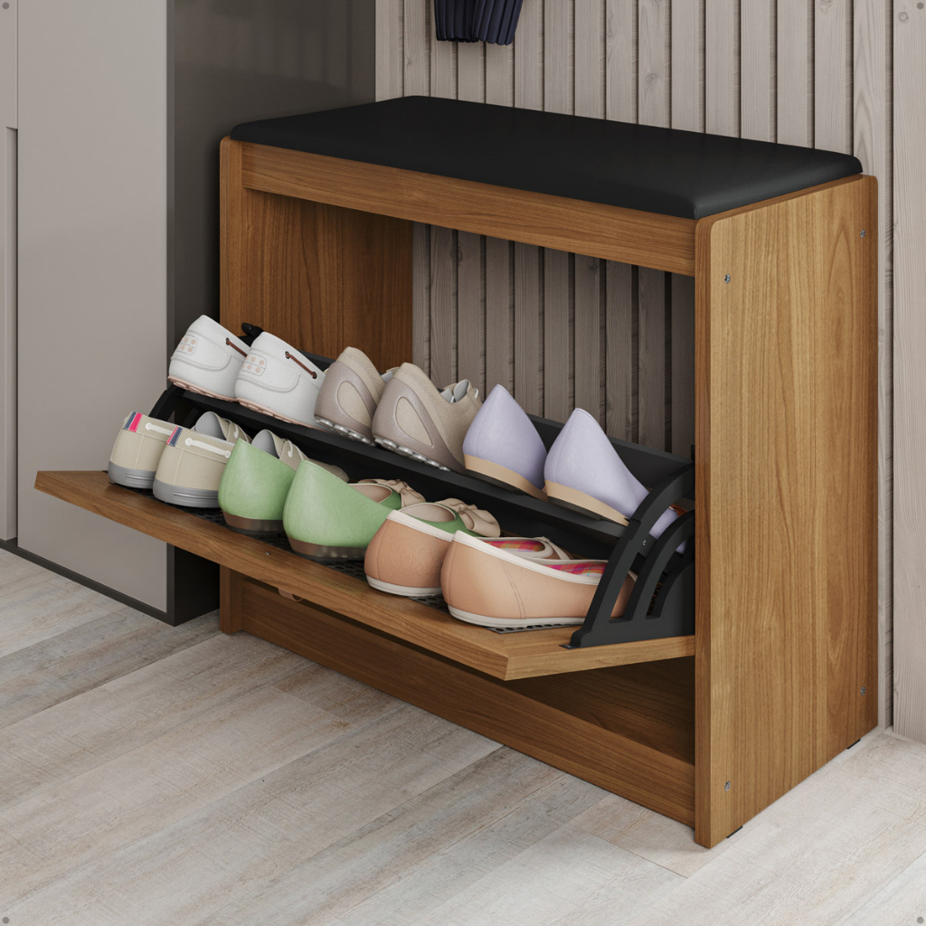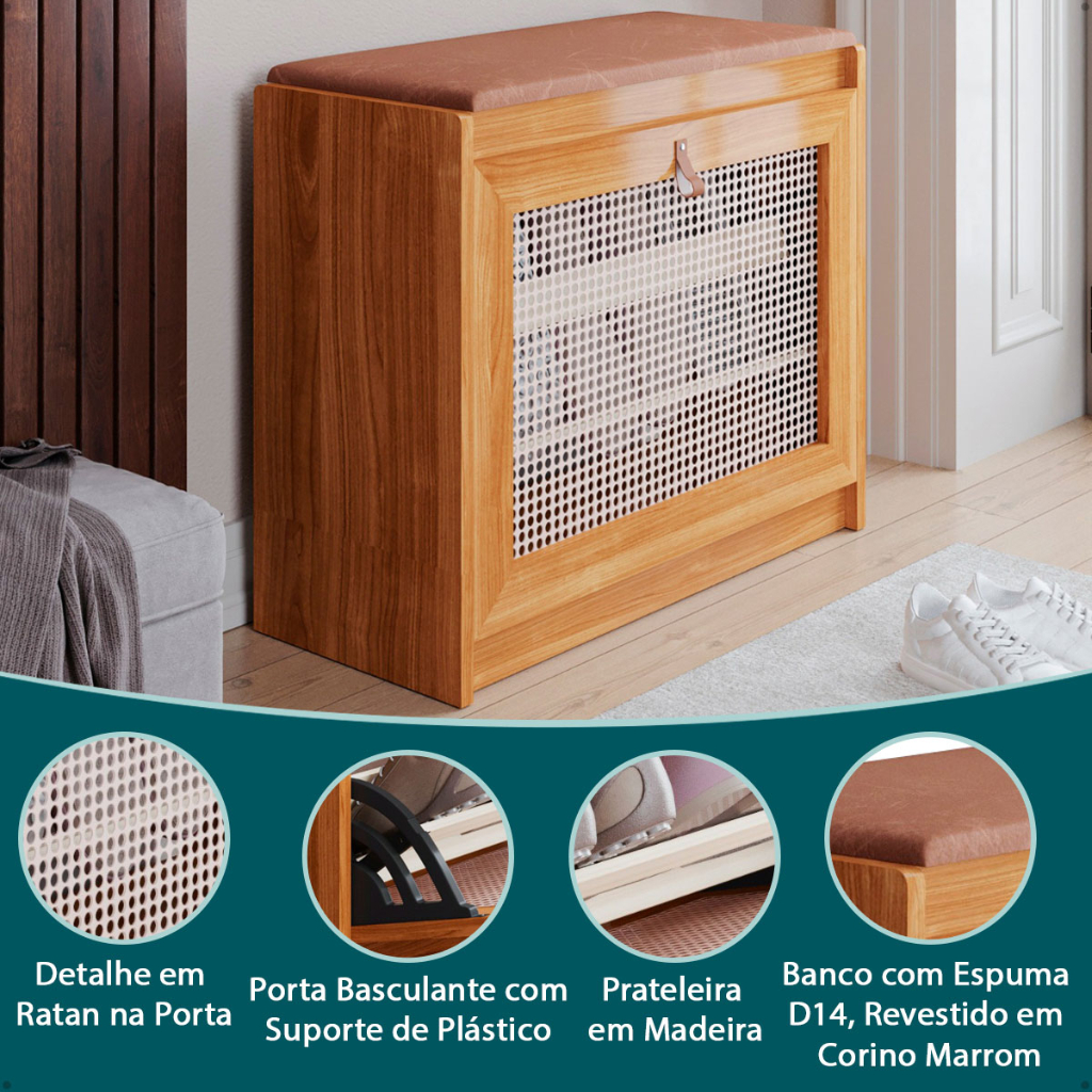 Sapateira Banco Plenitude Madeira Maciça e Assento em Corino