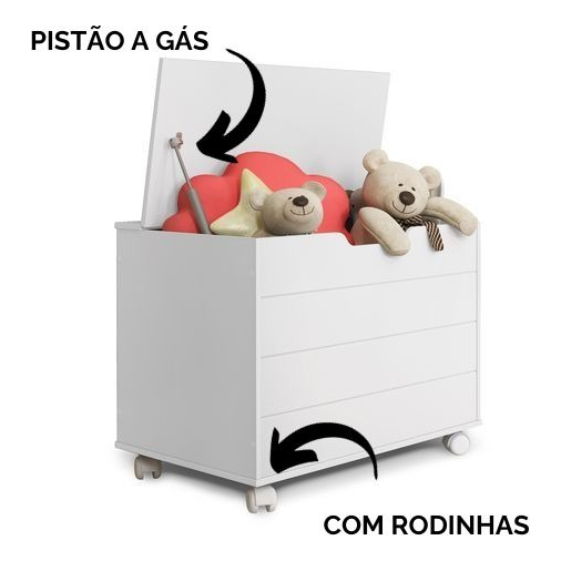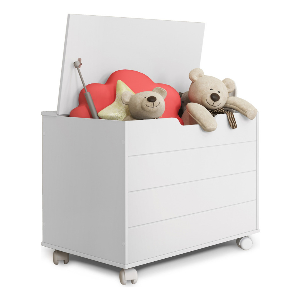 Baú Toys Caixa De Brinquedos Organizadora Com Tampa E Rodas MDF