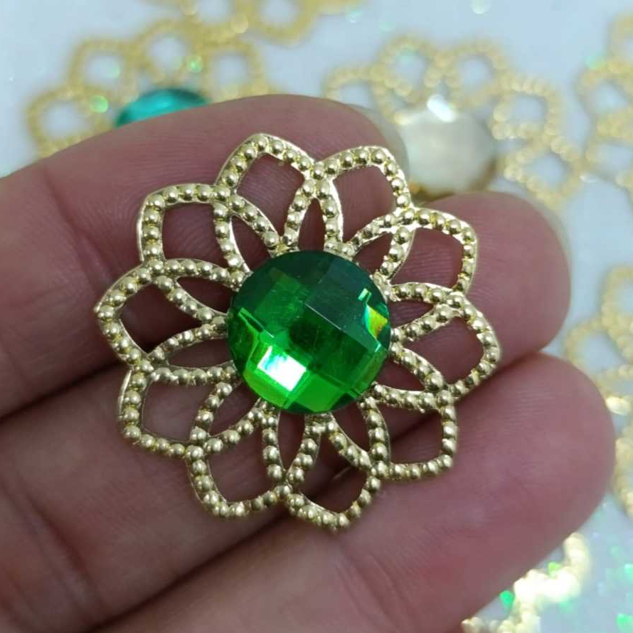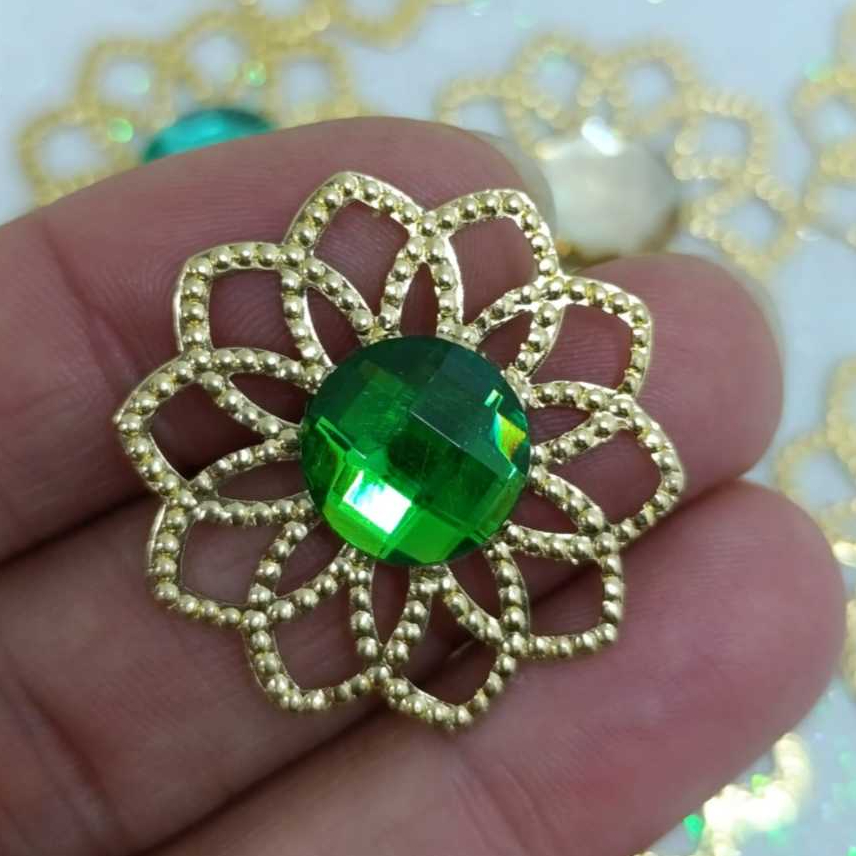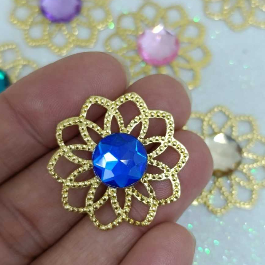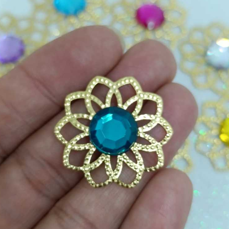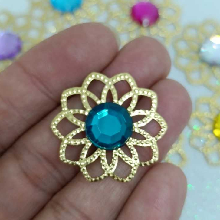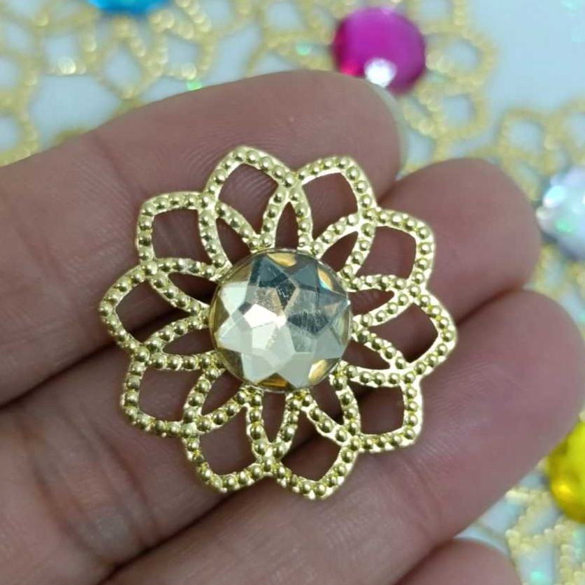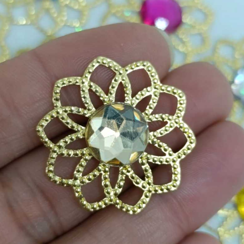 Kit Tag Metal Dourada Rendada + Chaton 12mm Redondo - 25 e 50 Unidades para Artesanato