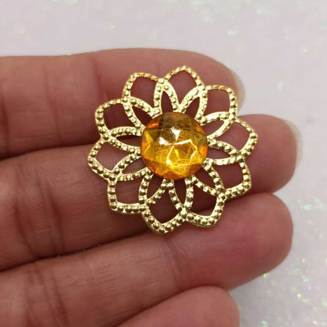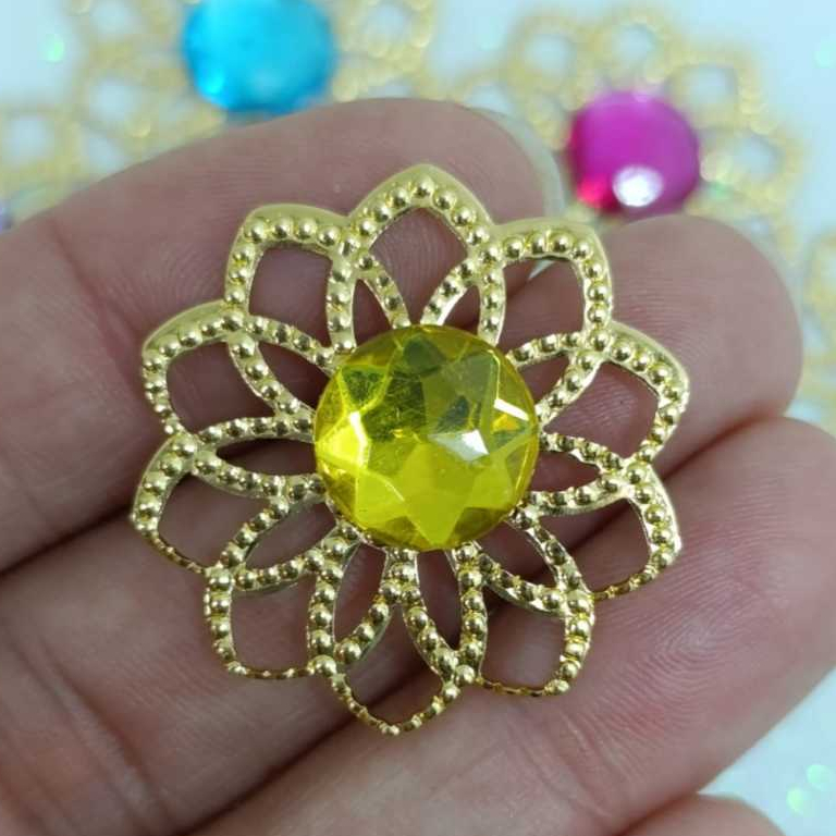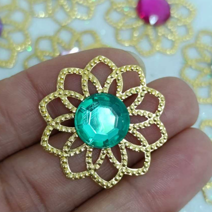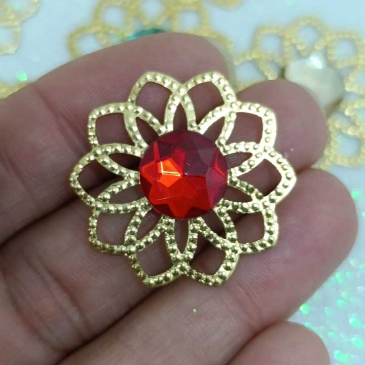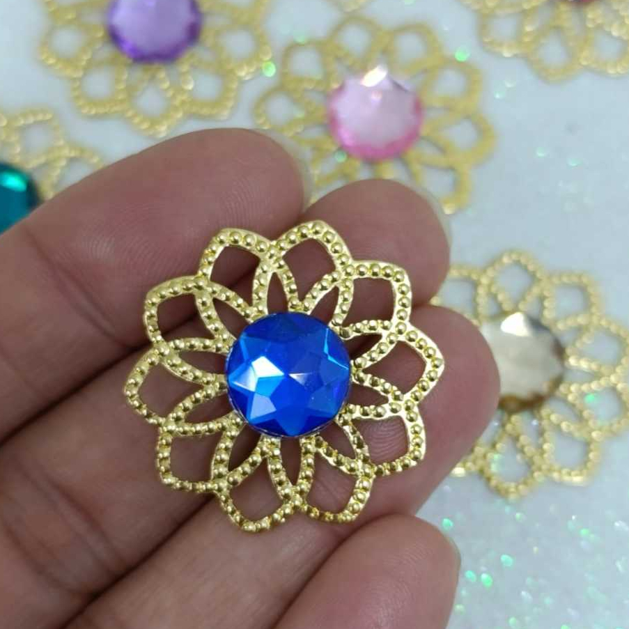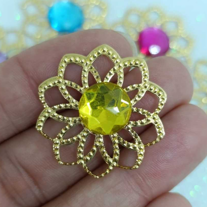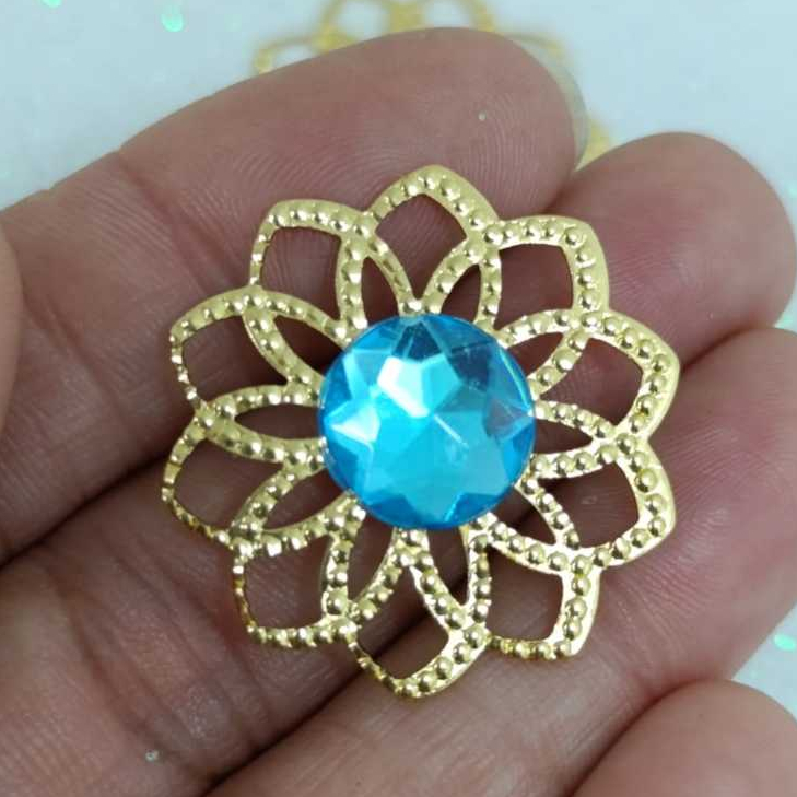Kit Tag Metal Dourada Rendada + Chaton 12mm Redondo - 25 e 50 Unidades para Artesanato
