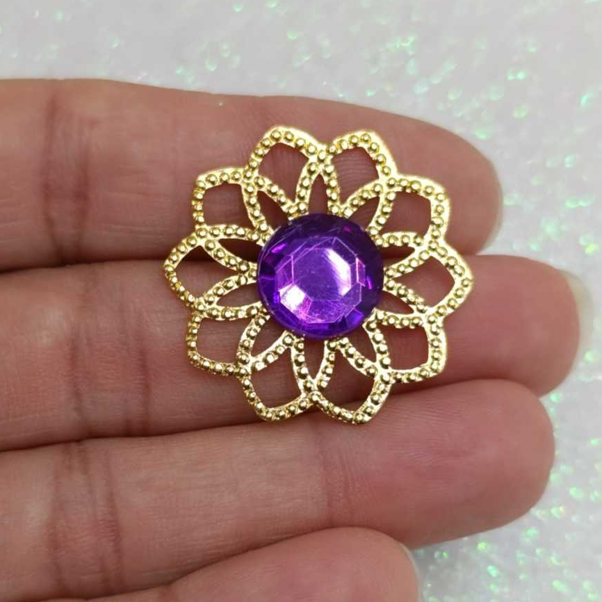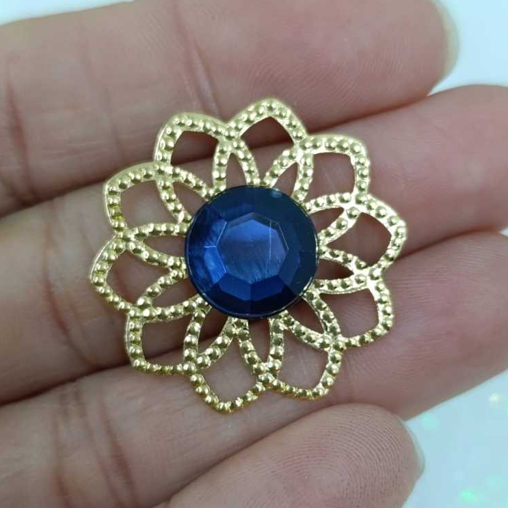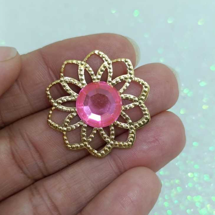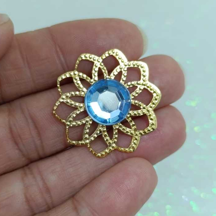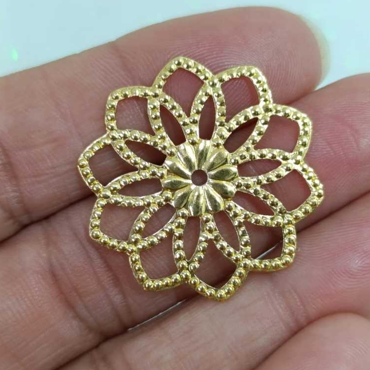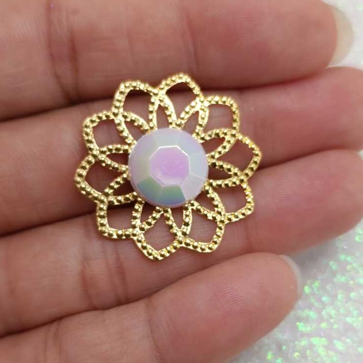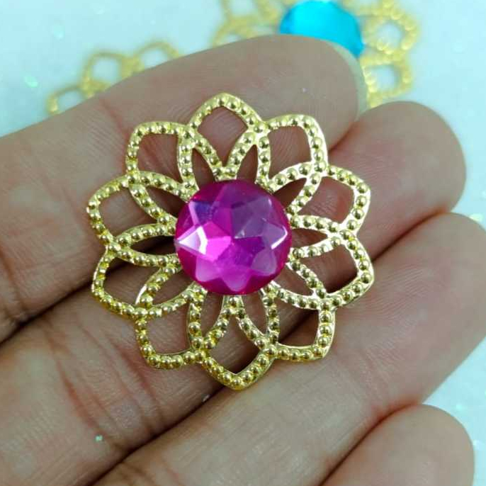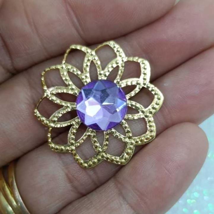 Kit Tag Metal Dourada Rendada + Chaton 12mm Redondo - 25 e 50 Unidades para Artesanato